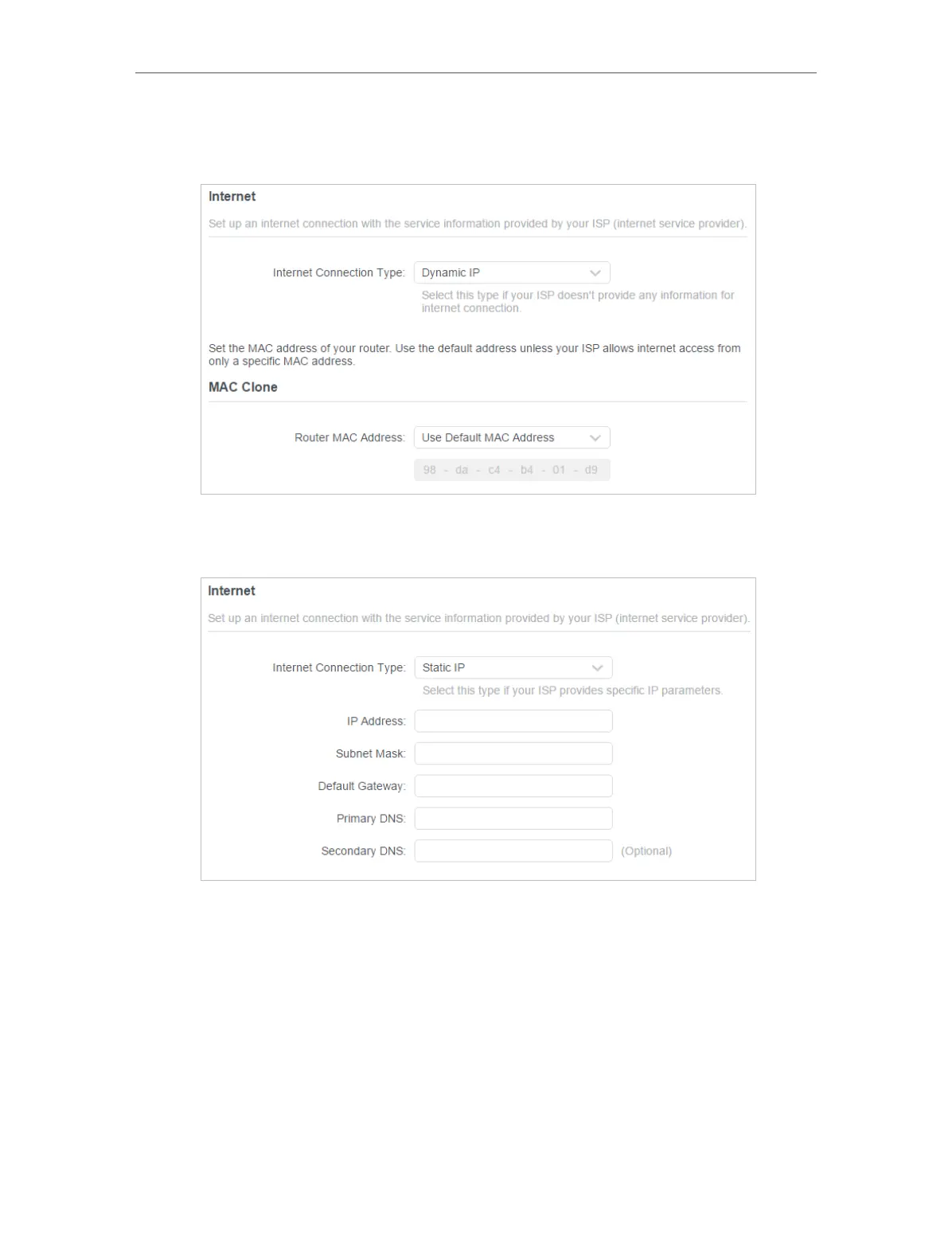 1 ) If you choose Dynamic IP, you need to select whether to clone the MAC address.