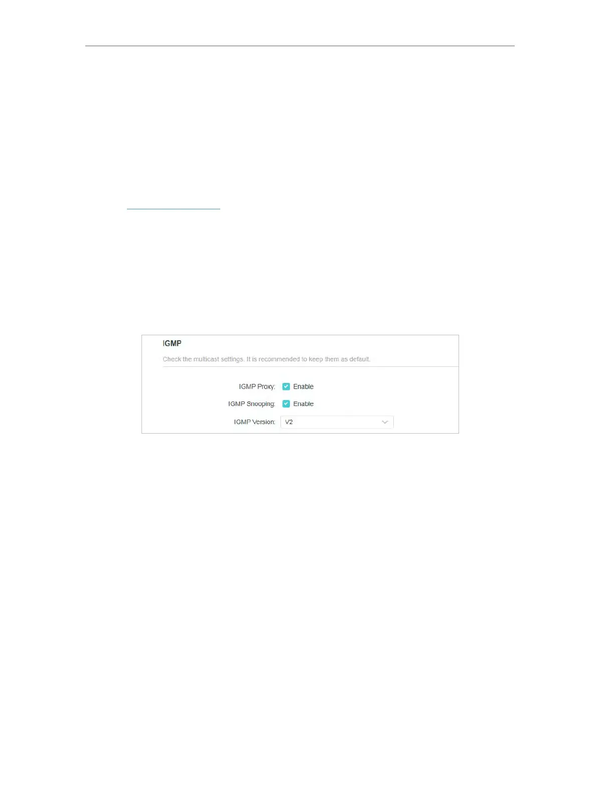 1 ) Tick the IGMP Proxy and IGMP Snooping checkbox, then select the IGMP Version,