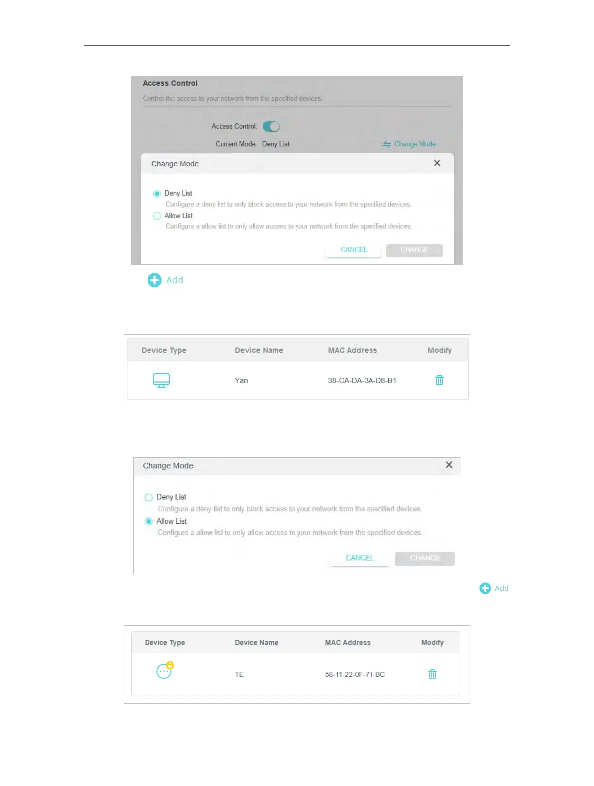 2 ) Your own device is in the Allow List by default and cannot be deleted. Click