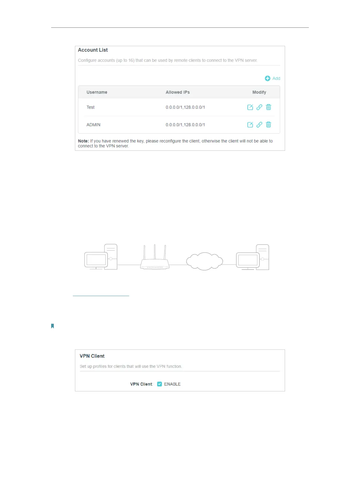Note: Firmware update may be required to support VPN Client.
