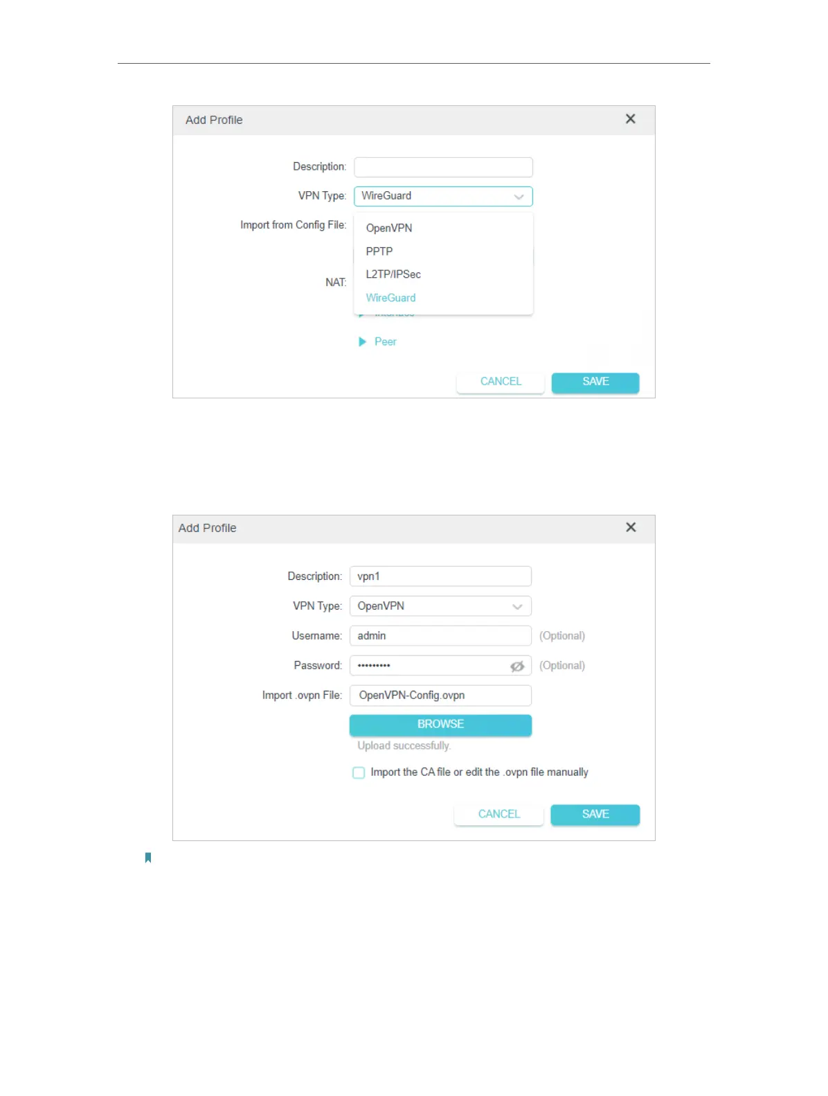 Note: You can also check the box of Import the CA file or edit the . ovpn file manually, then upload the CA file or