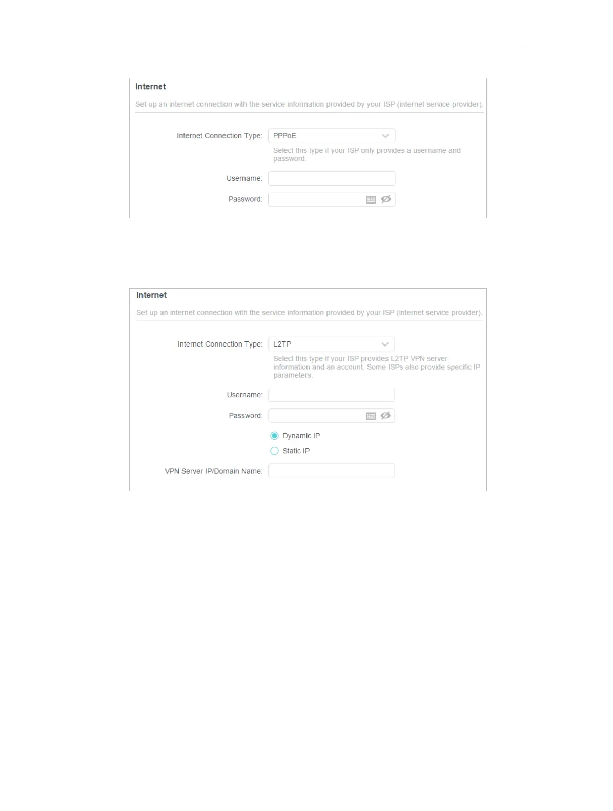 4 ) If you choose L2TP, enter the username and password and choose the