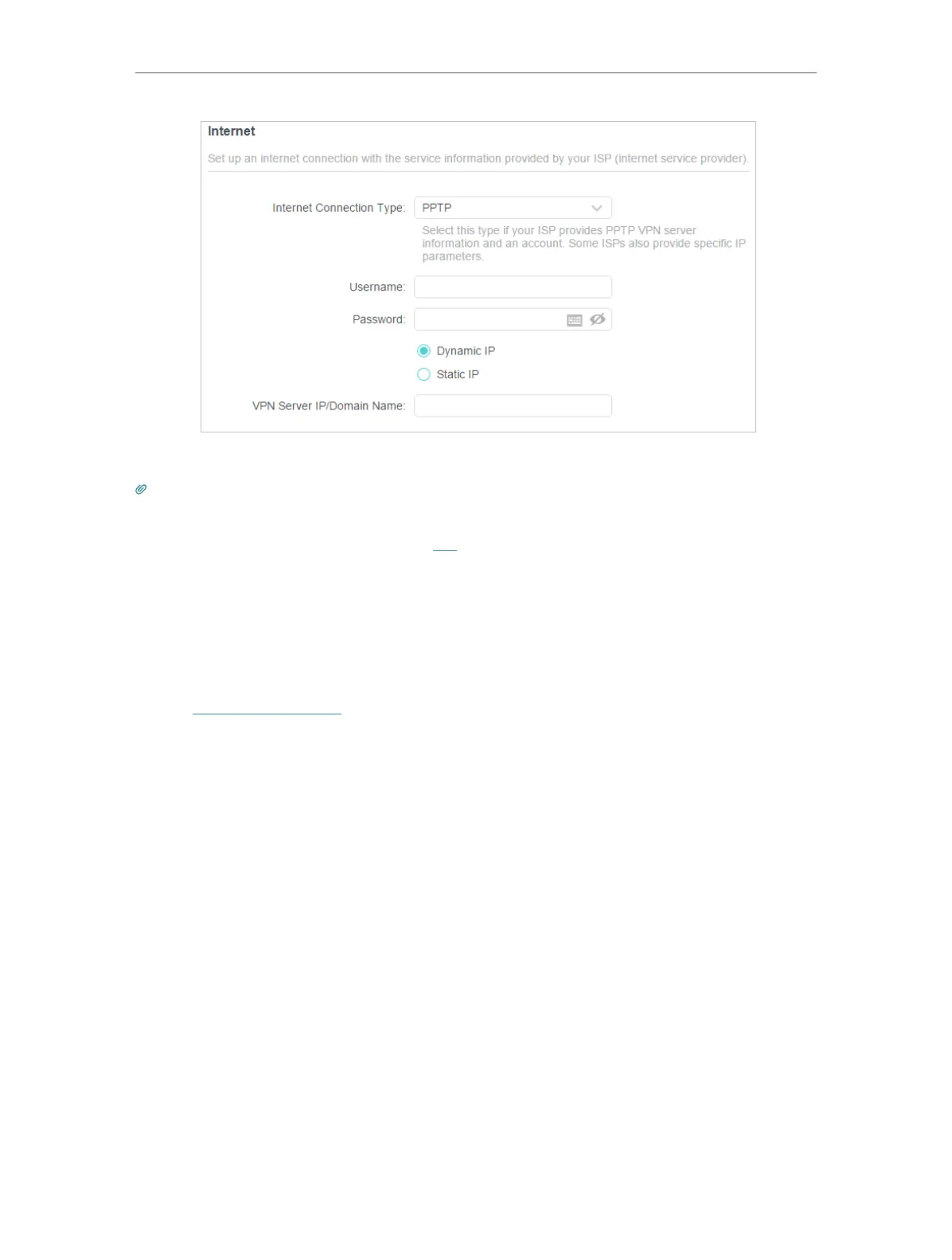 • If you use Dynamic IP and PPPoE and you are provided with any other parameters that are not required on the page,