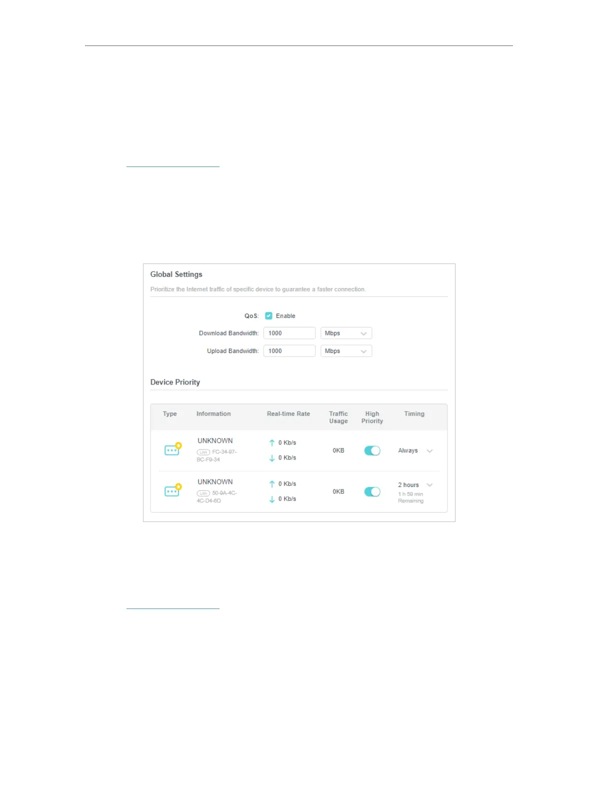 duration. Devices set as high priority will be allocated more bandwidth and so continue