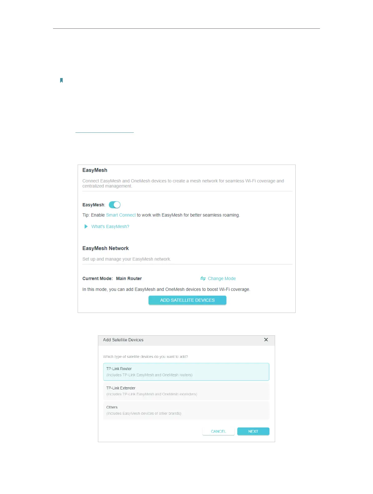 3. Click ADD SATELLITE DEVICES, select TP-Link Router, then click NEXT.
