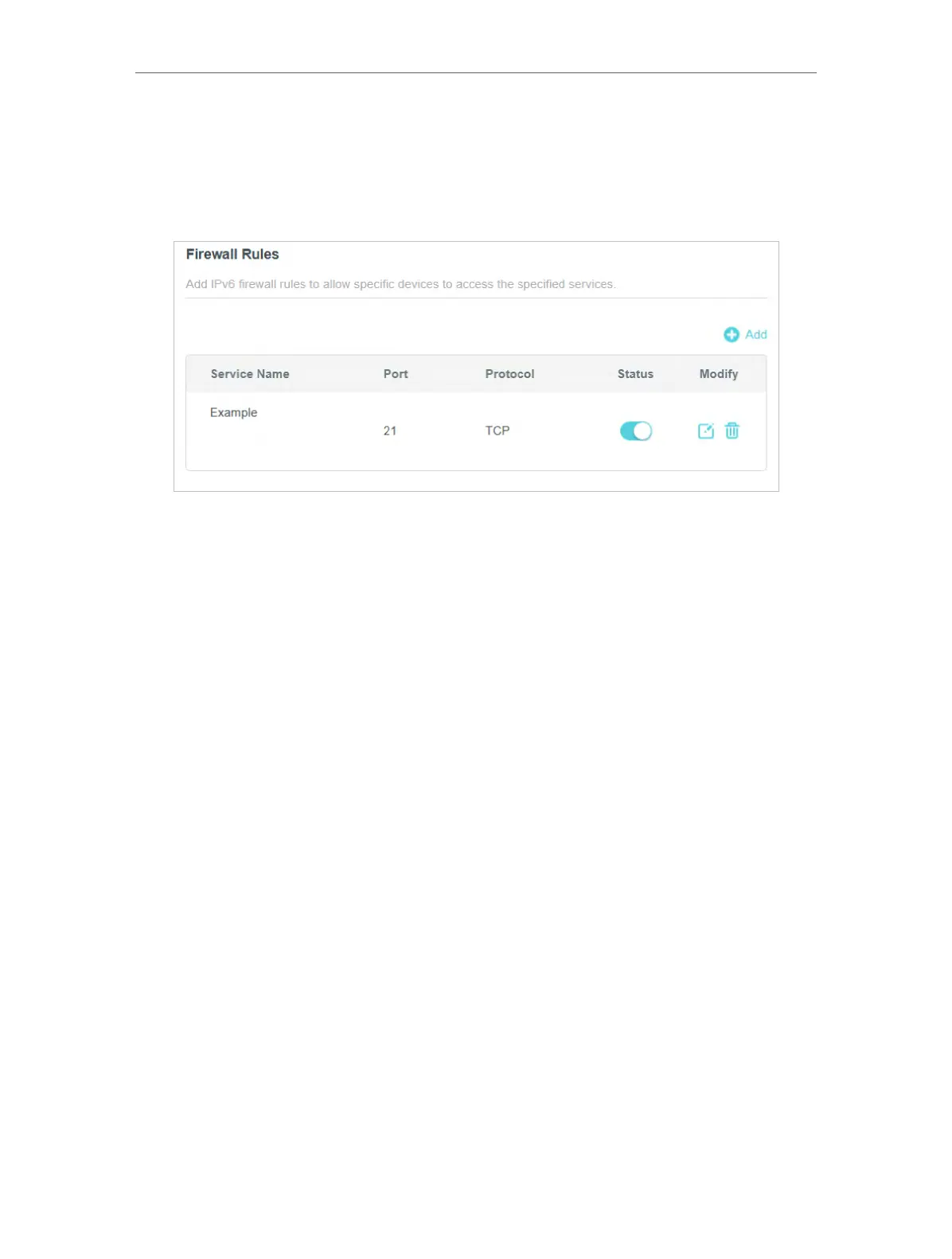 7. Click SAVE, and the newly created IPv6 firewall rule will appear in Firewall Rules.