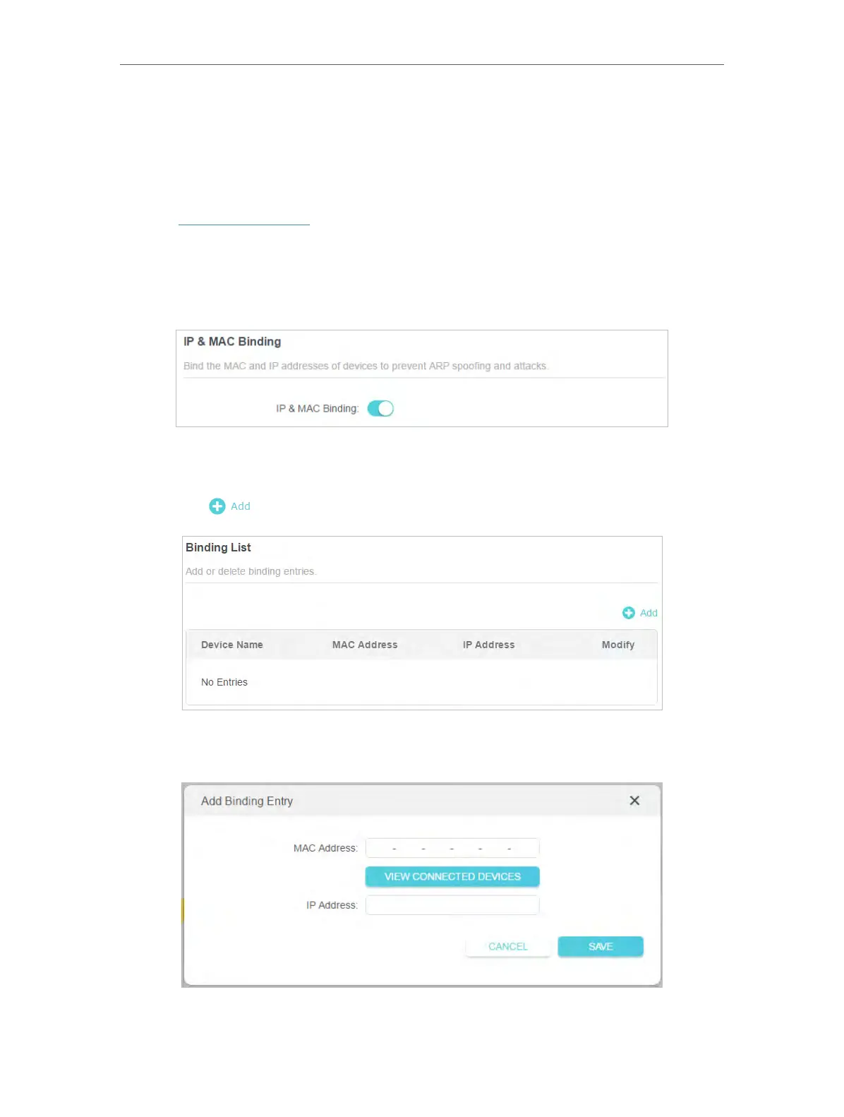 3. Enable IP & MAC Binding.