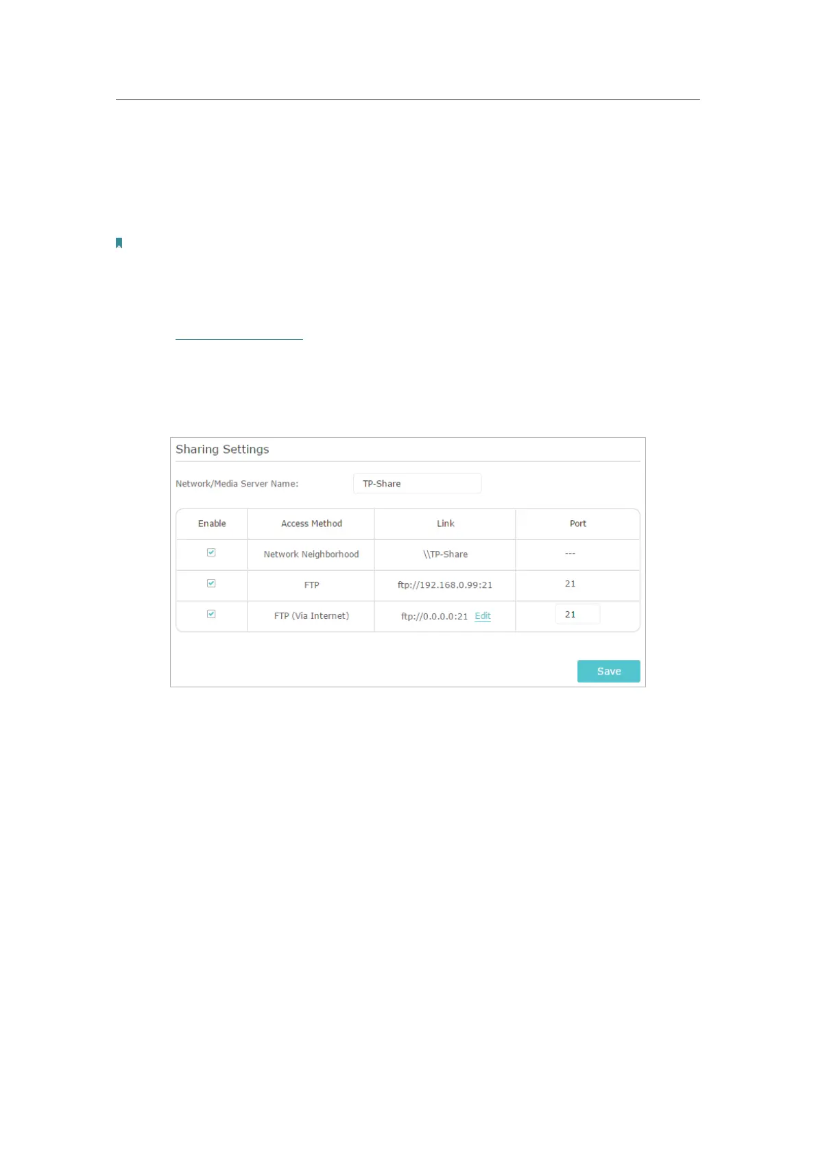 4. Refer to the following table to access your USB disk remotely.