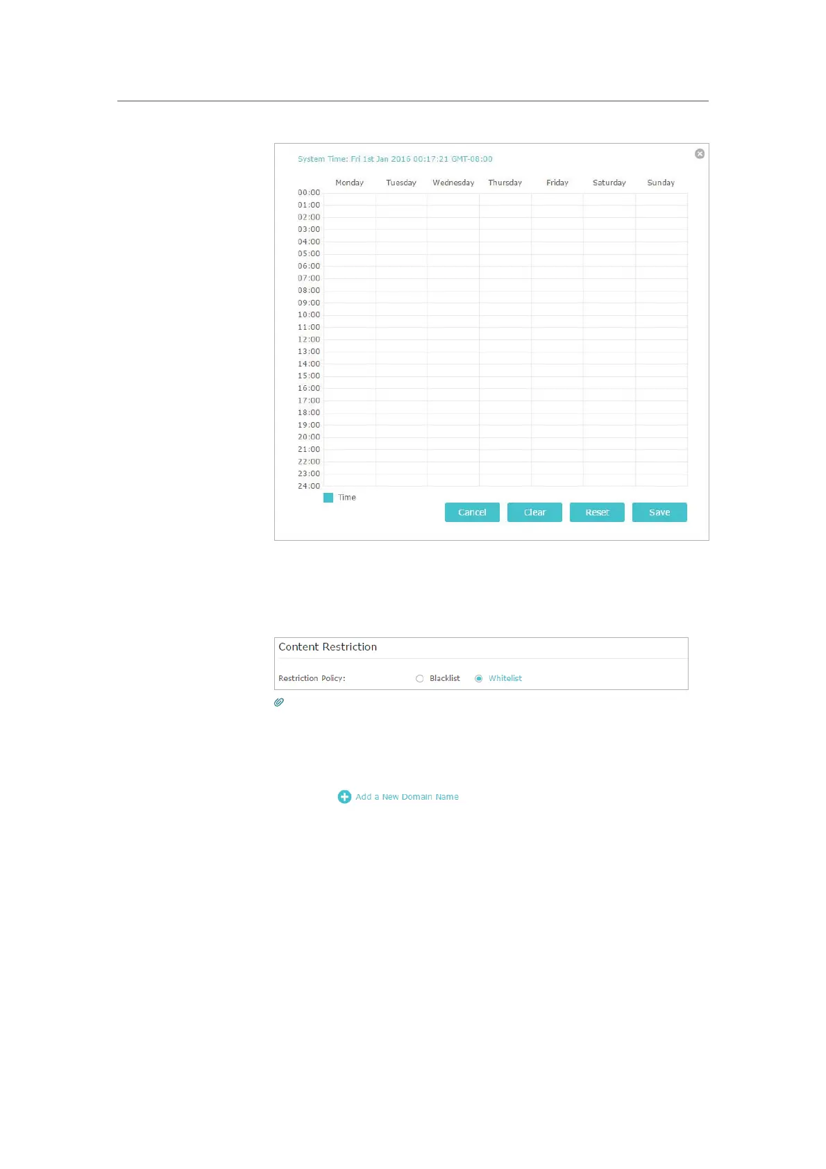 • For Whitelist: Enter a web address (e.g. wikipedia.org) to allow access