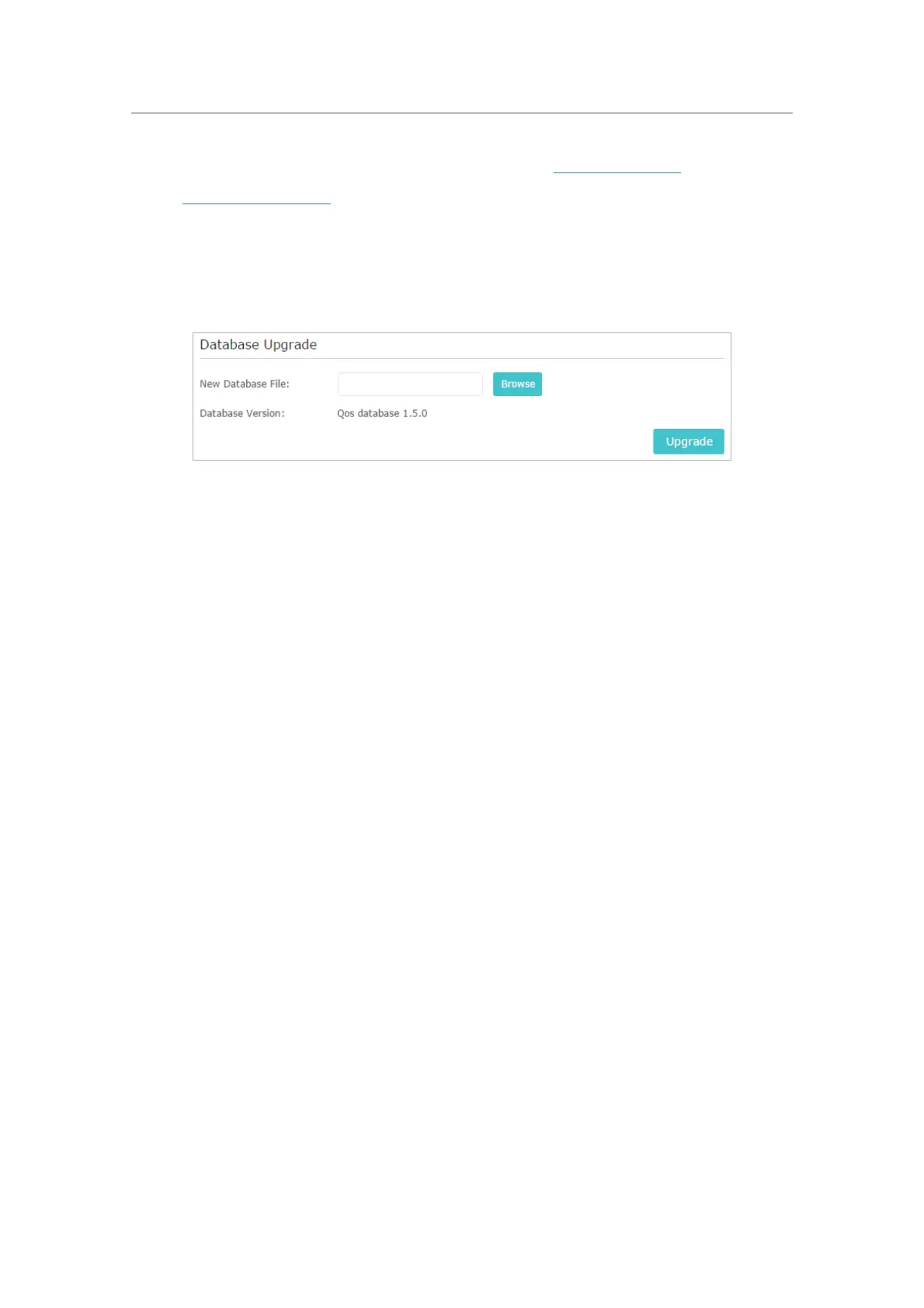 Advanced > QoS > Database. Click Browse to select the database upgrade