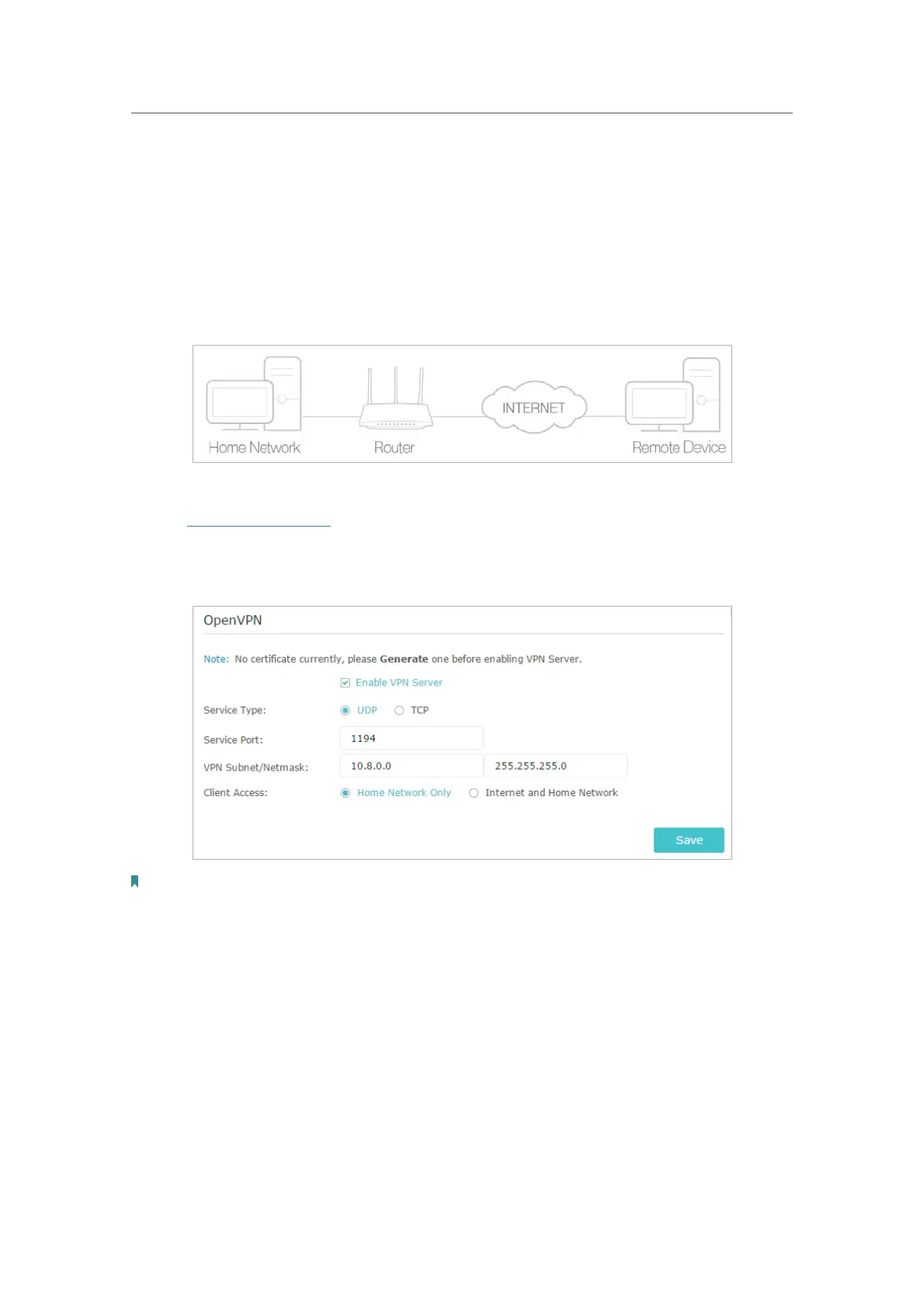 • The first time you configure the OpenVPN Server, you may need to Generate a certificate before you enable the VPN