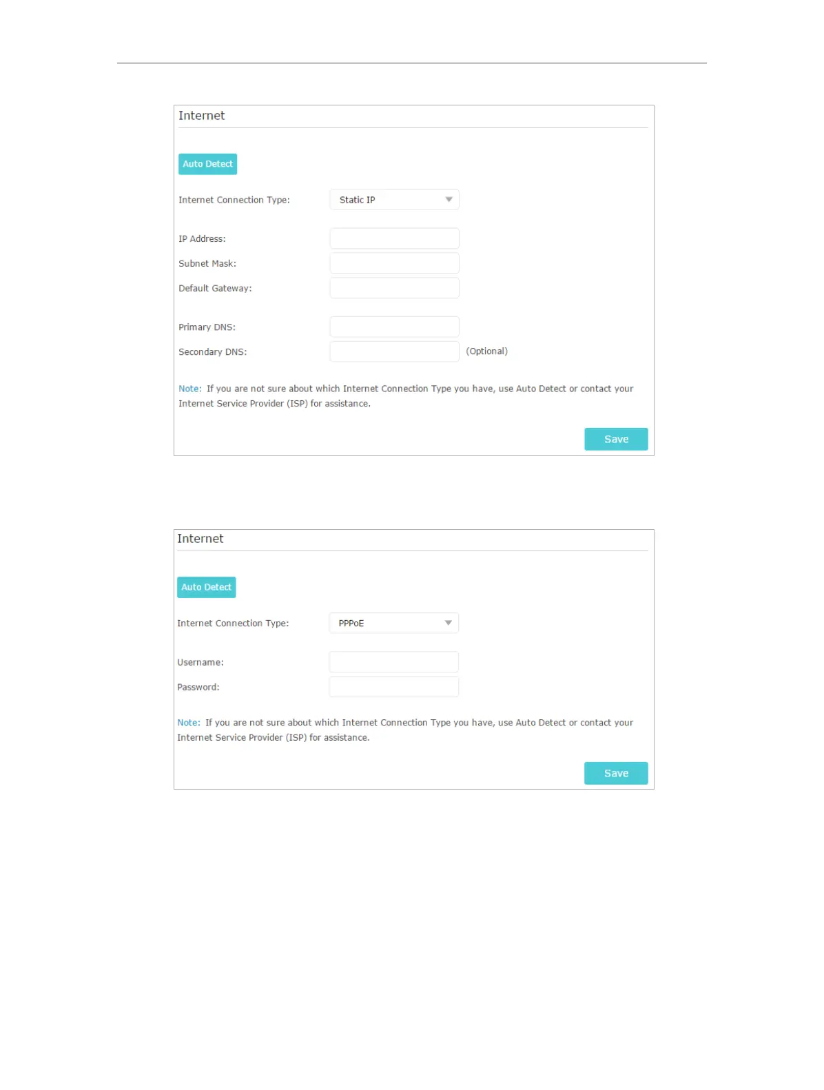 3 ) If you choose PPPoE, enter the username and password provided by your ISP.