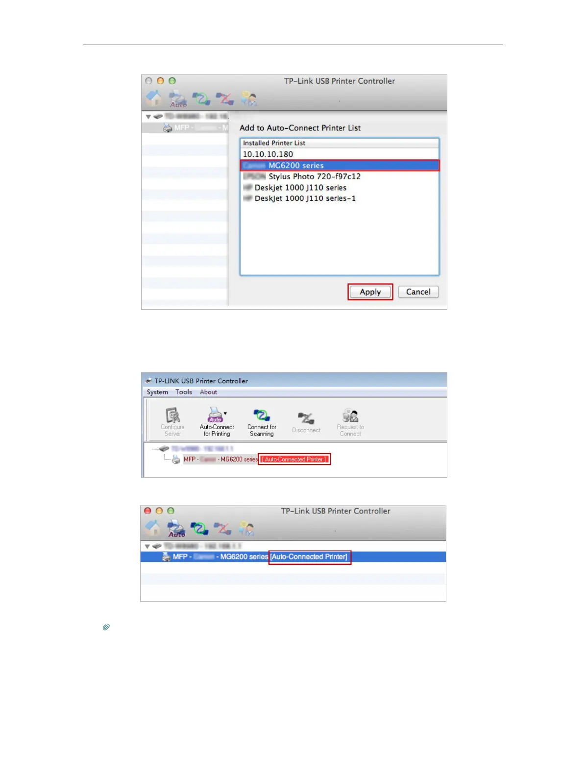 5 ) You will see the printer marked as Auto-Connect Printer. Now you can print with