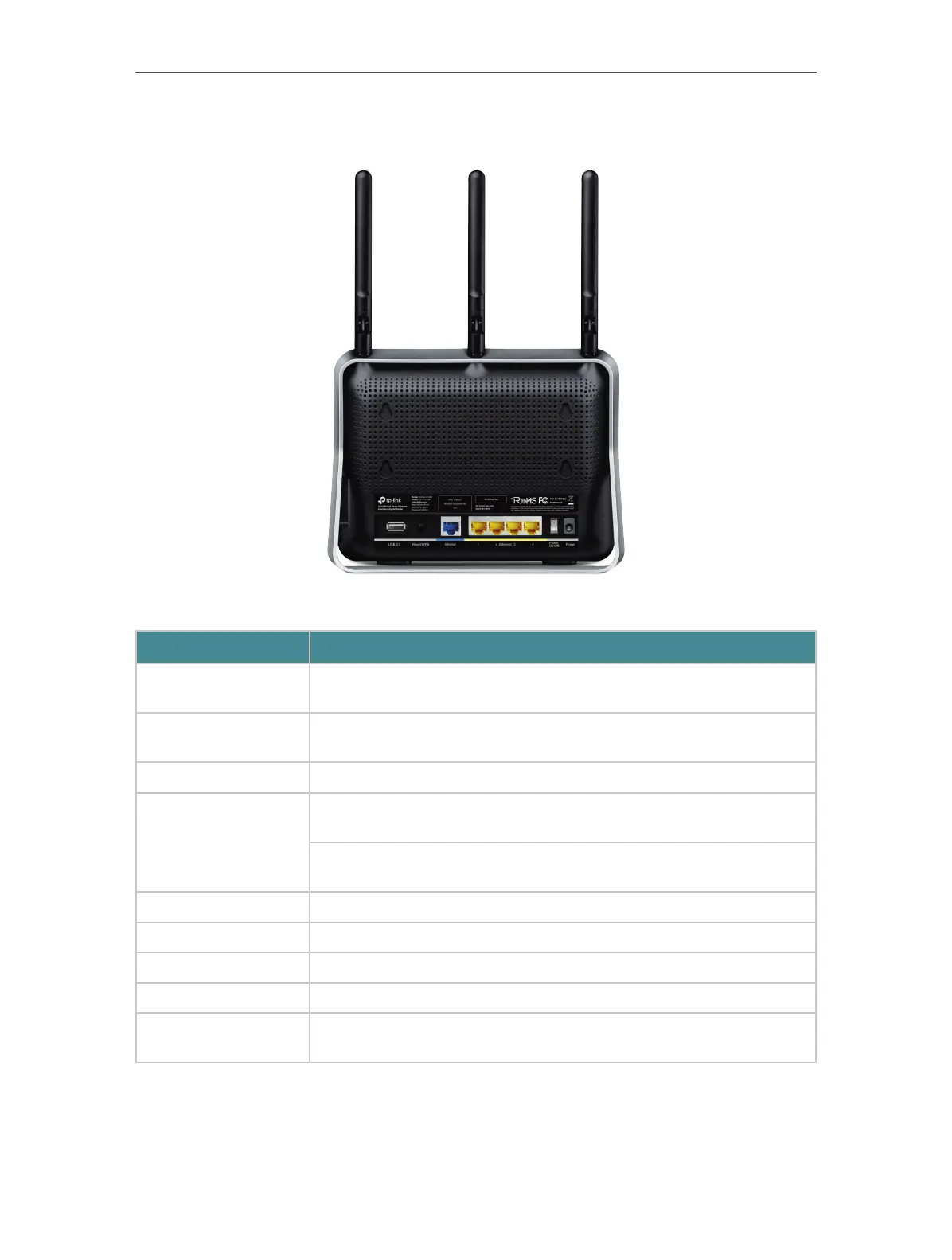 Power Port For connecting the router to a power socket via the provided power adapter.