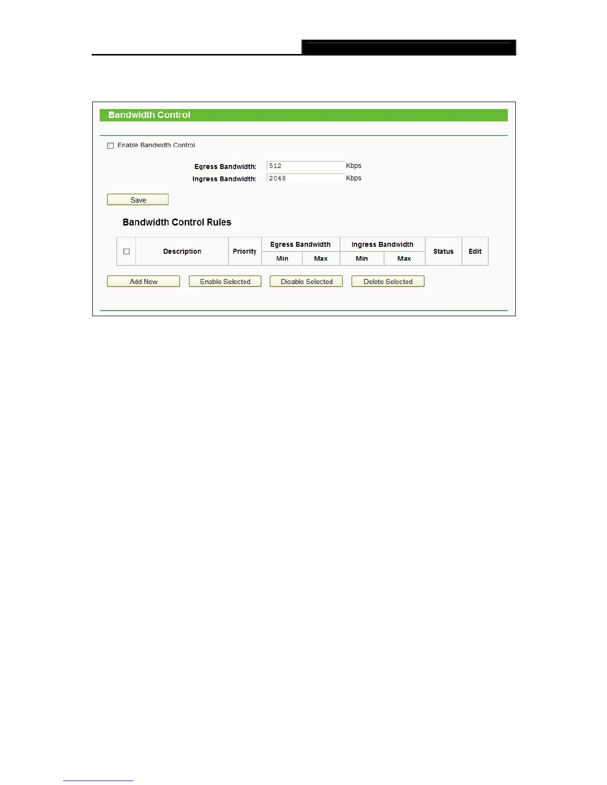 Enable Bandwidth Control - Check this box so that the Bandwidth Control settings can take