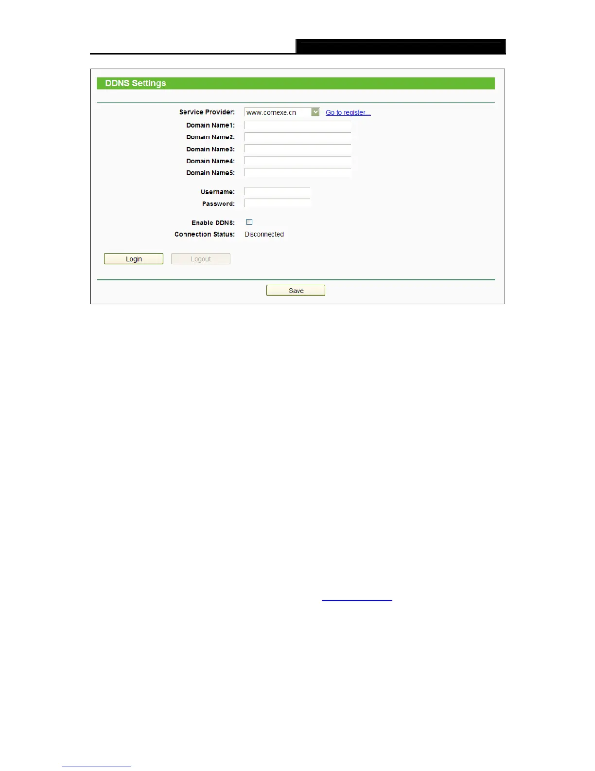 Connection Status -The status of the DDNS service connection is displayed here.