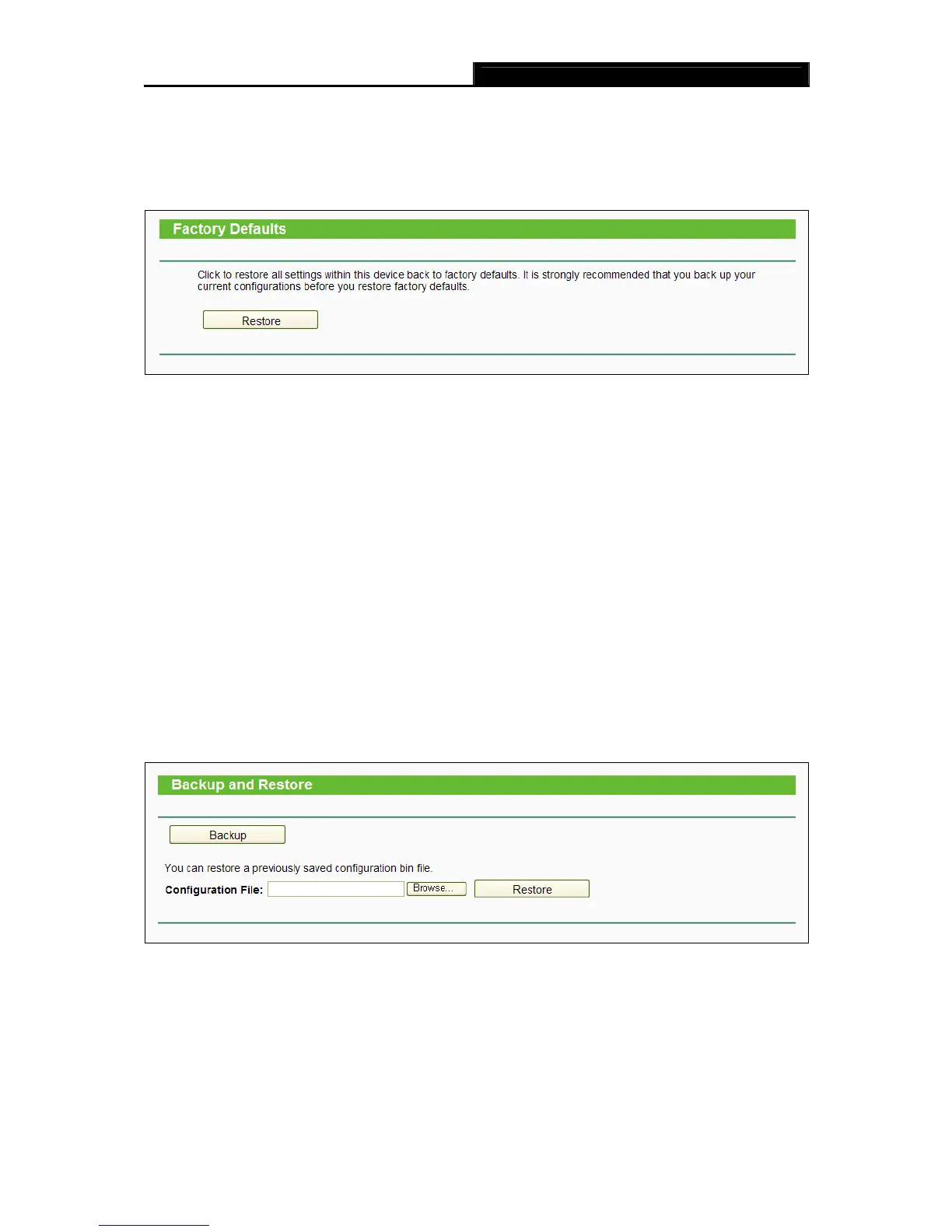 configurations of the router to factory defaults on the following screen
