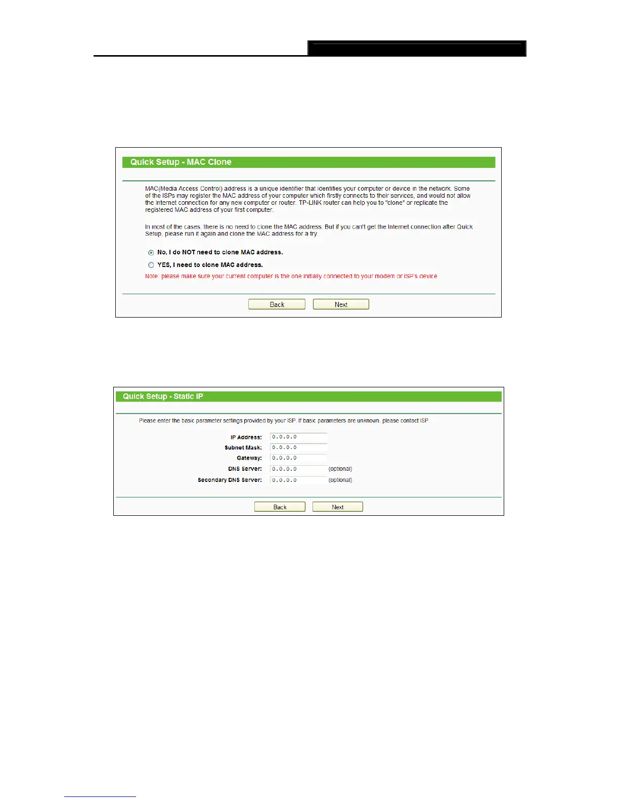 1) If the connection type detected is Dynamic IP, there will appear the MAC Clone page (as