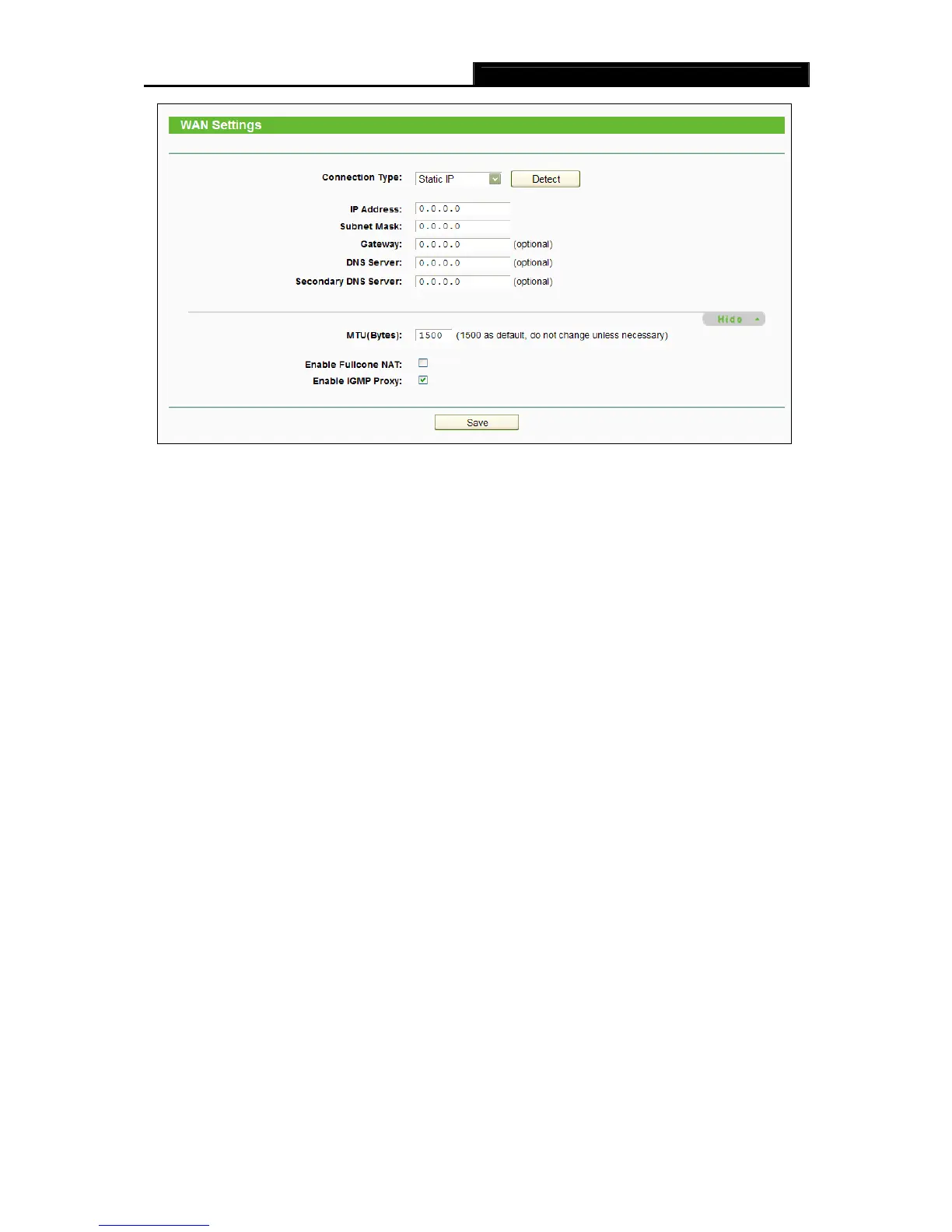 IP Address - Enter the IP address in dotted-decimal notation provided by your ISP.
