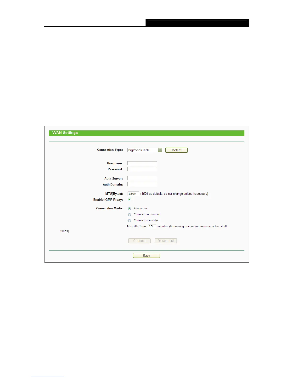Figure 4-7 WAN - BigPond Cable