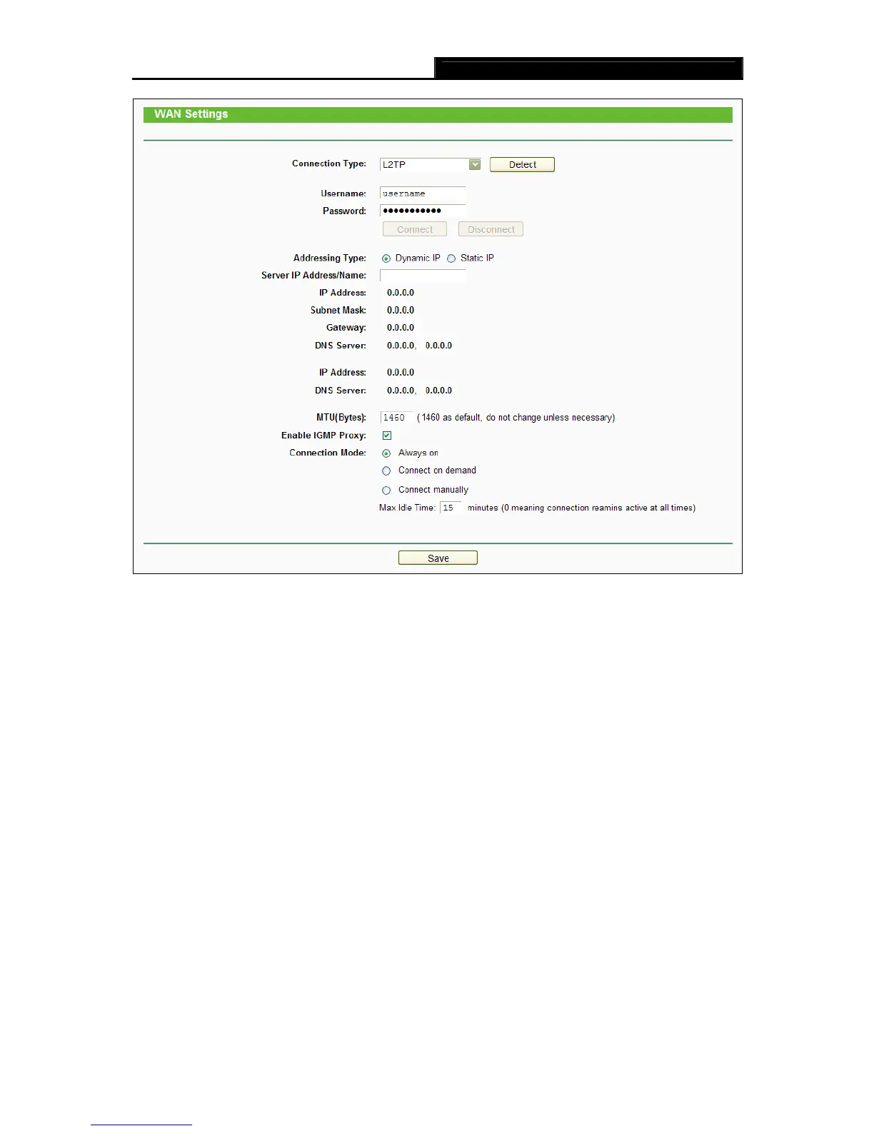 Figure 4-8 WAN - L2TP/Russia L2TP