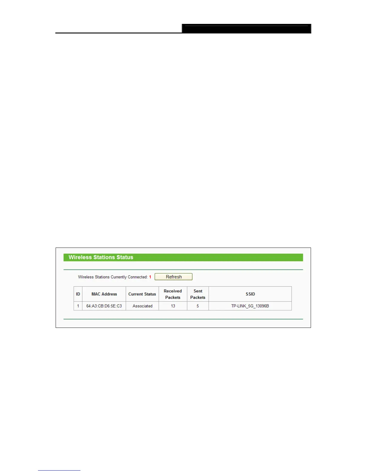 connected wireless stations, click on the Refresh button.