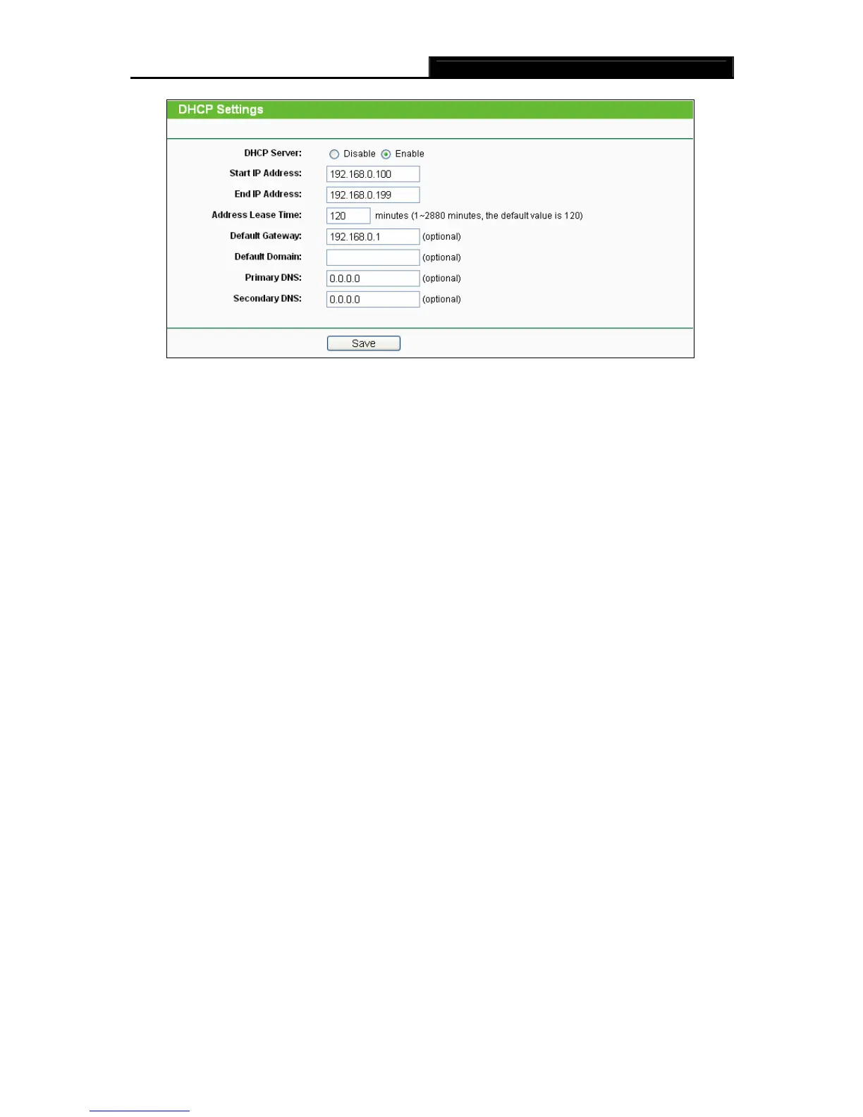DHCP Server - Enable or Disable the DHCP server. If you disable the Server, you must