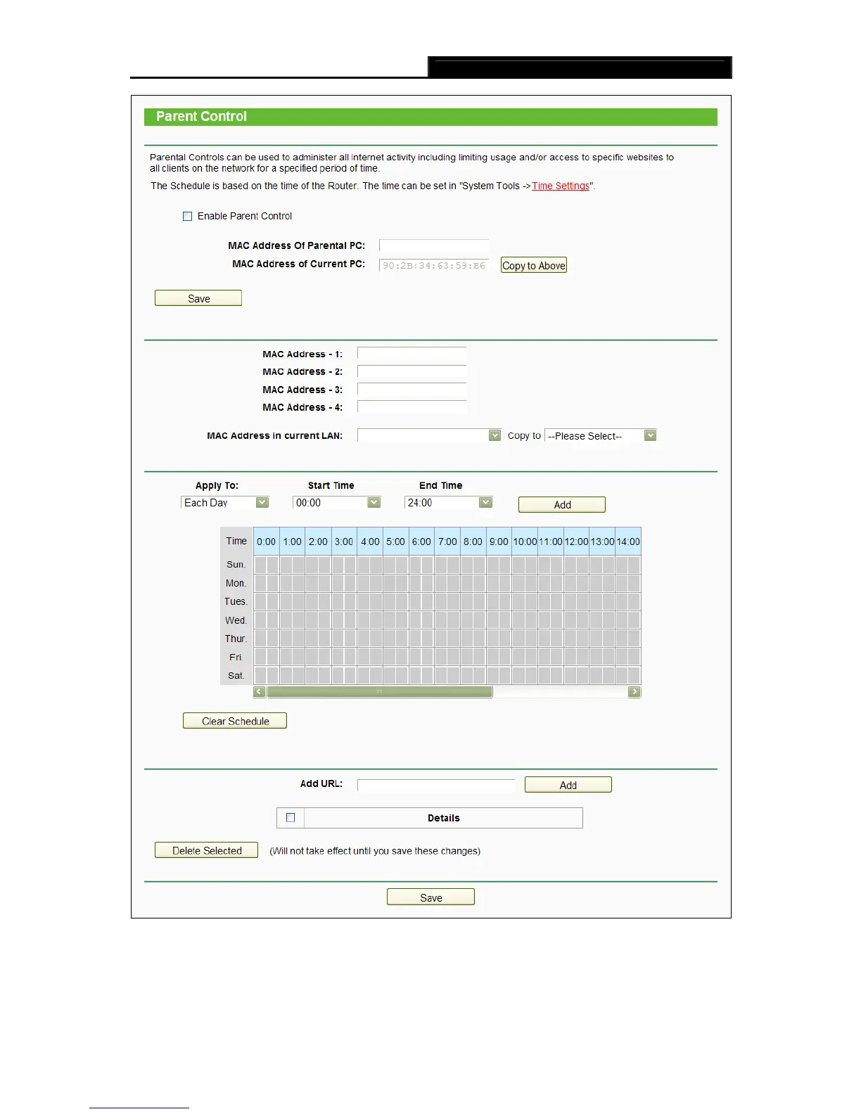 Parent Control - Check Enable if you want this function to take effect; otherwise, check