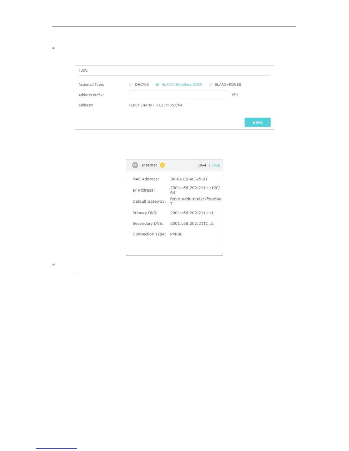 6. Click Status to check whether you have successfully set up an IPv6 connection. The