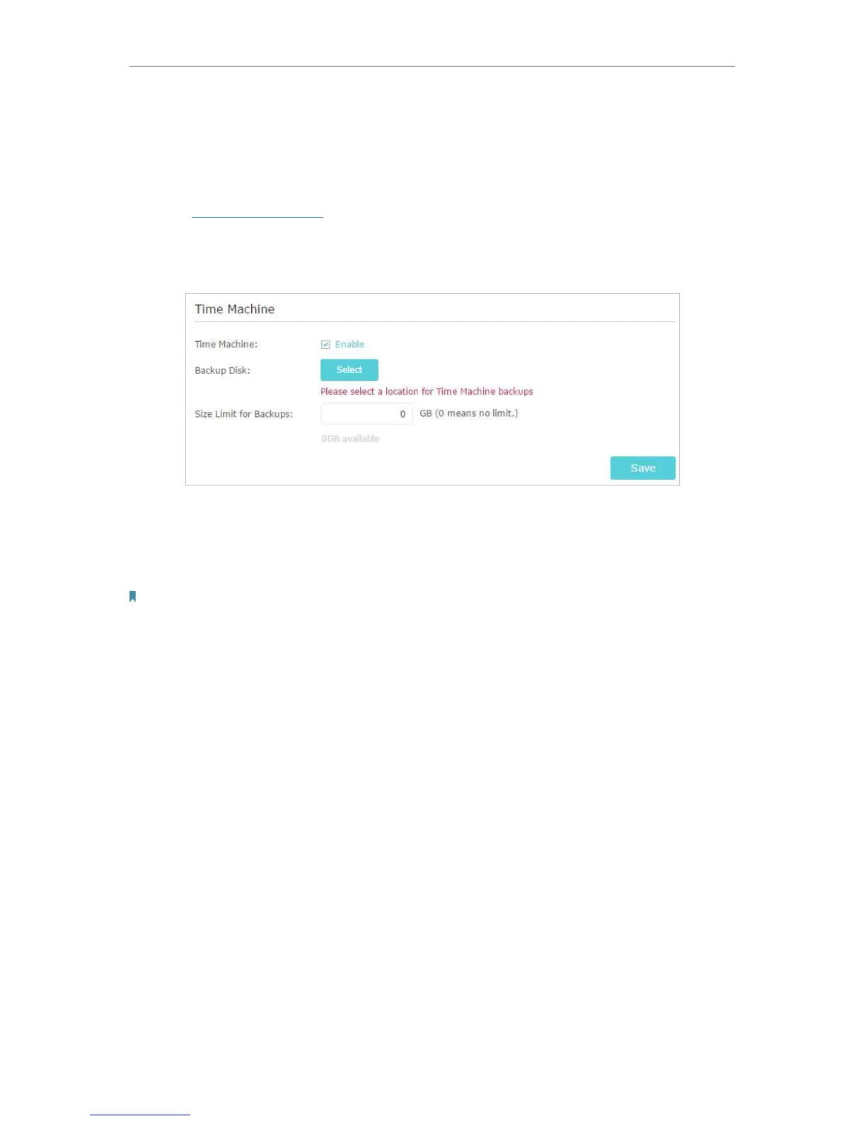 4. Click Select to select a location for Time Machine backups.