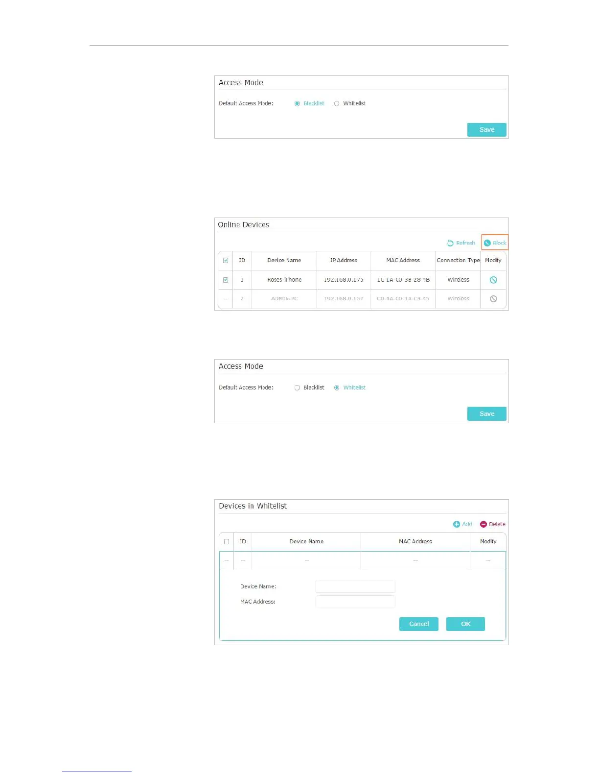 Now you can block or allow specific client devices to access your