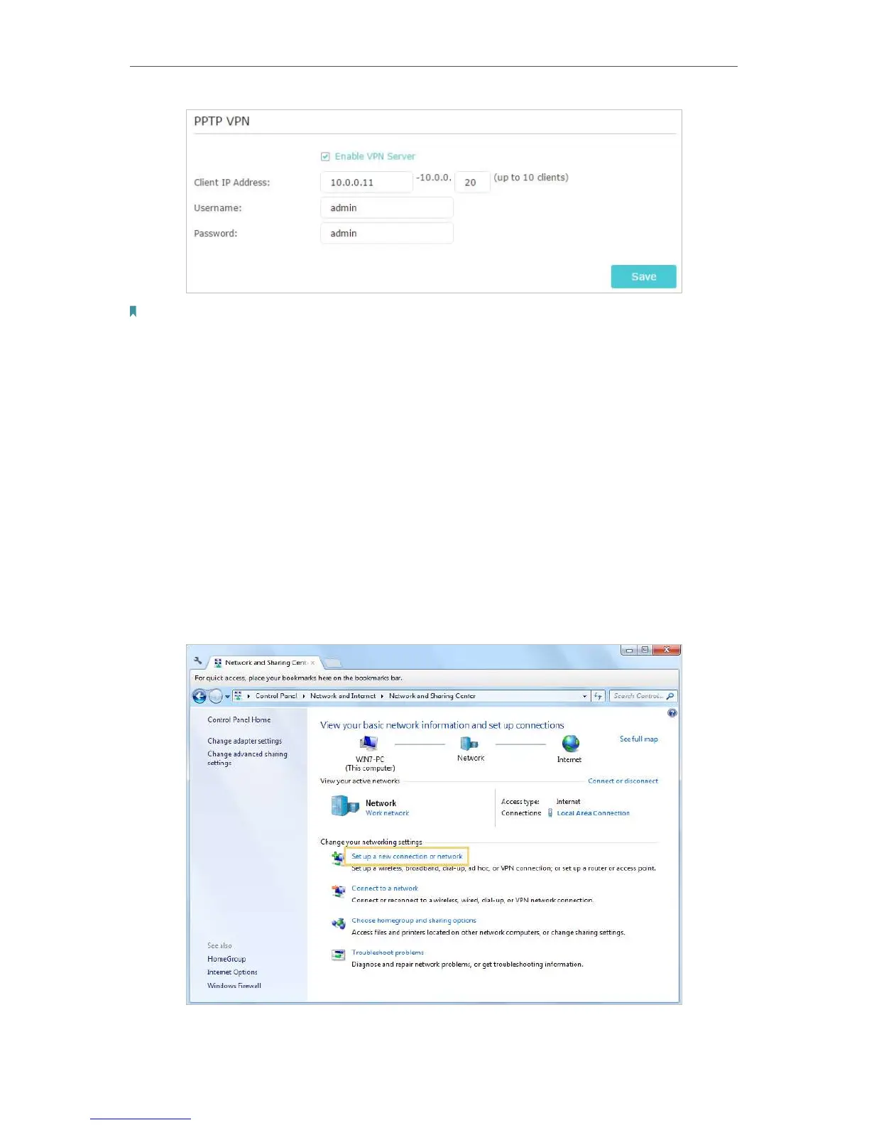 software to connect to PPTP Server. Here we use the Windows built-in PPTP software