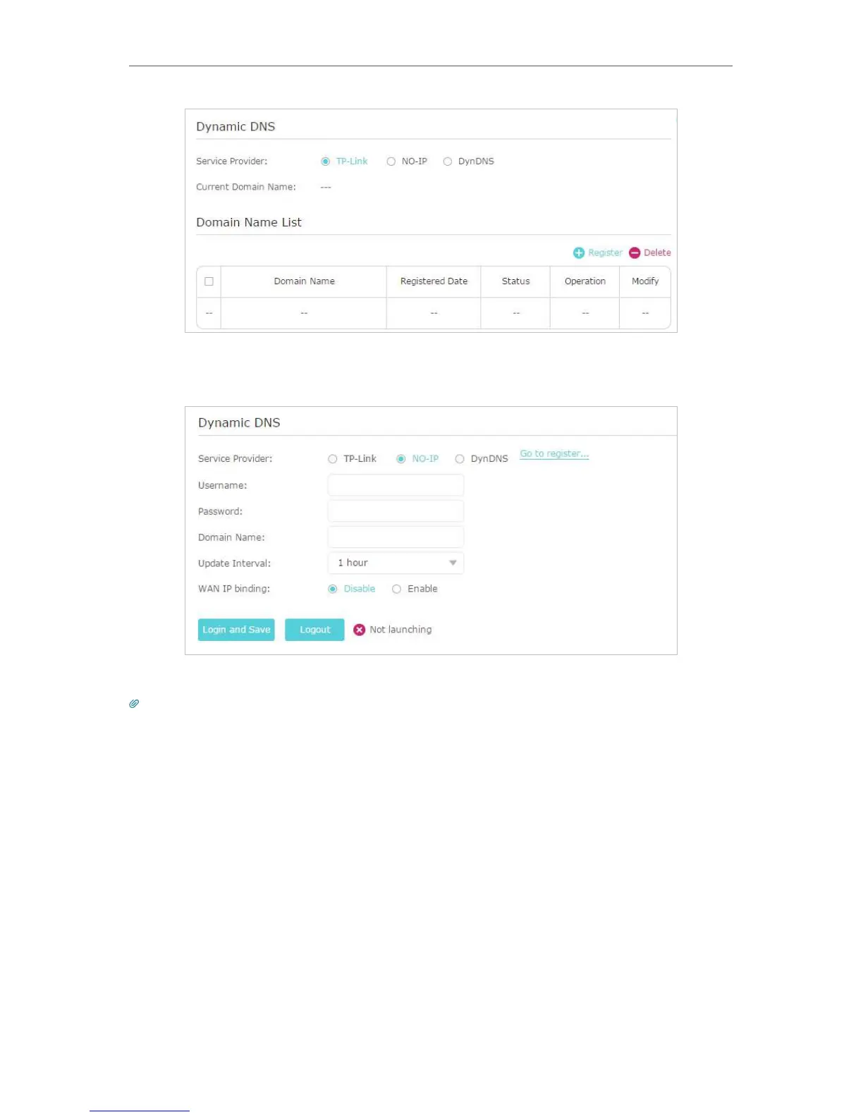 If you have chosen NO-IP or DynDNS, enter the username, password and domain name