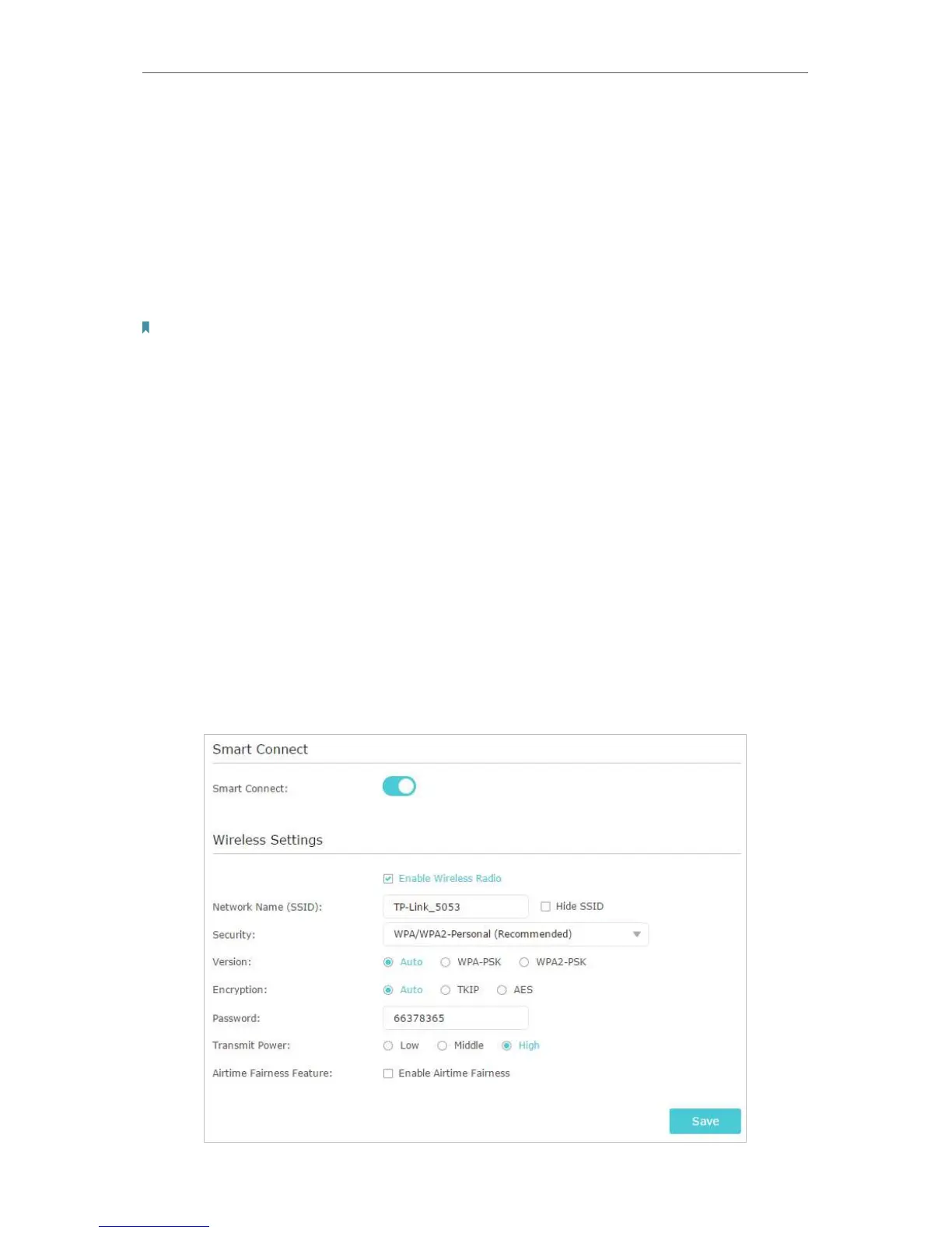 3. Keep the default or set a new SSID and password, and click Save. This SSID and