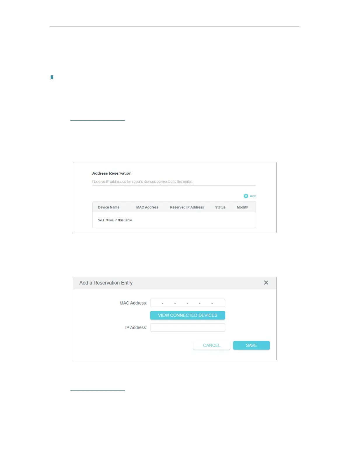 3. Click Add in the Address Reservation section.