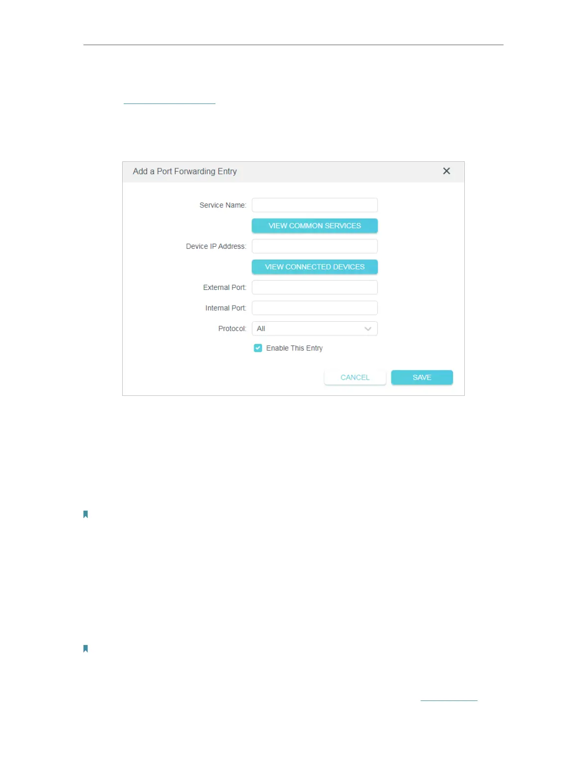 • It is recommended to keep the default settings of Internal Port and Protocol if you are not clear about