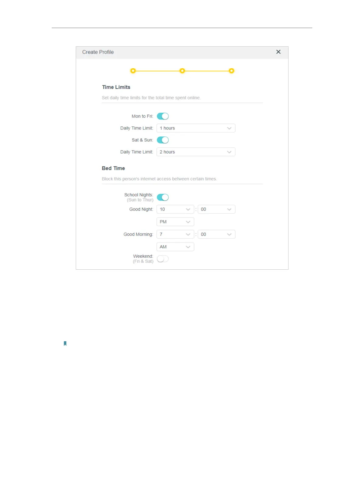 2 ) Enable Bed Time on School Nights and use the up/down arrows or enter times