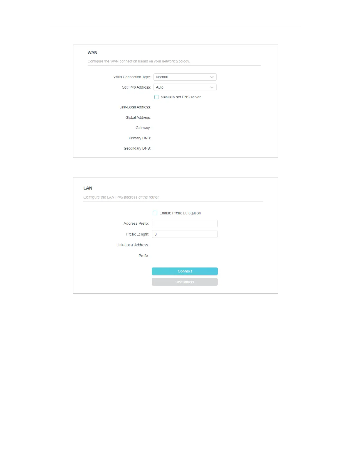 2 ) Configure the LAN settings. Fill in Address Prefix provided by your ISP.
