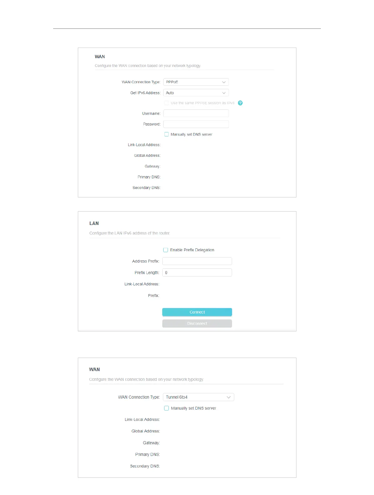 3. Tunnel 6to4: Select this type if your ISP uses 6 to 4 deployment fort assigning address.