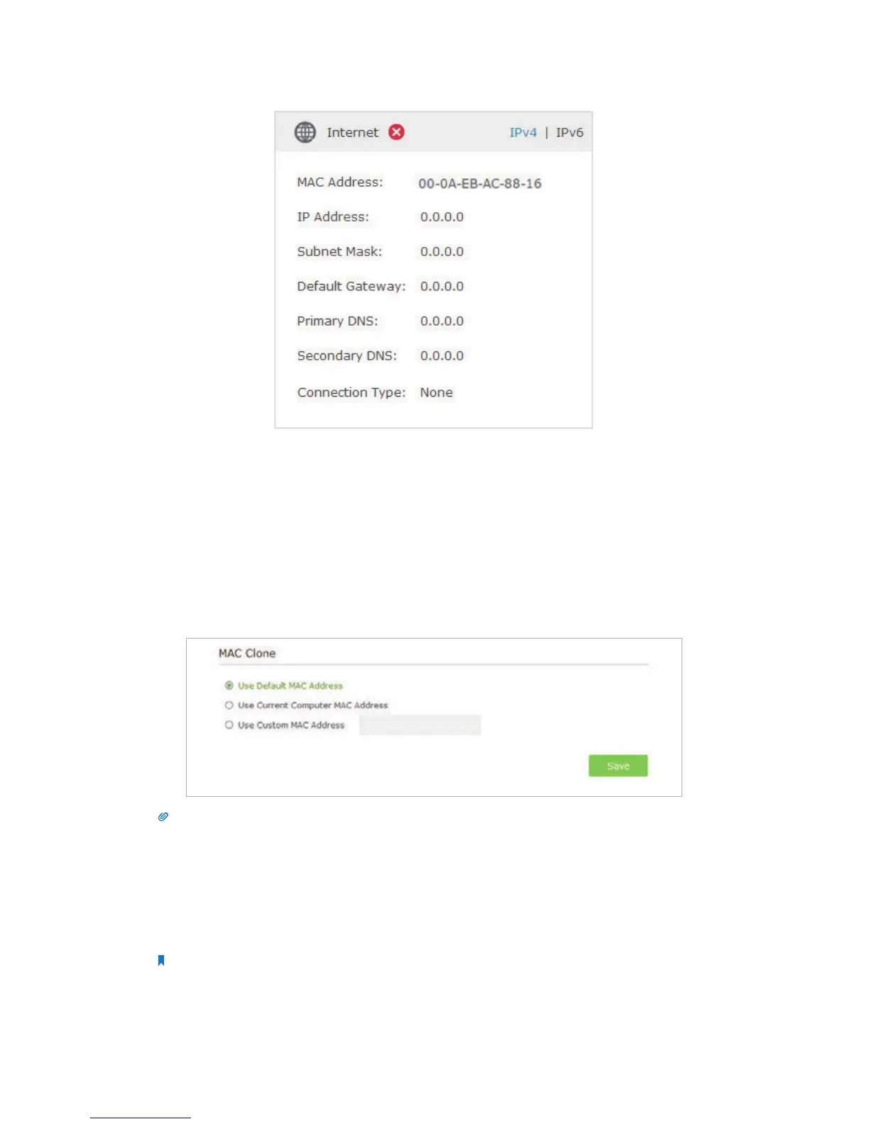 2 ) Go to Advanced > Network > Internet and focus on the MAC Clone section.