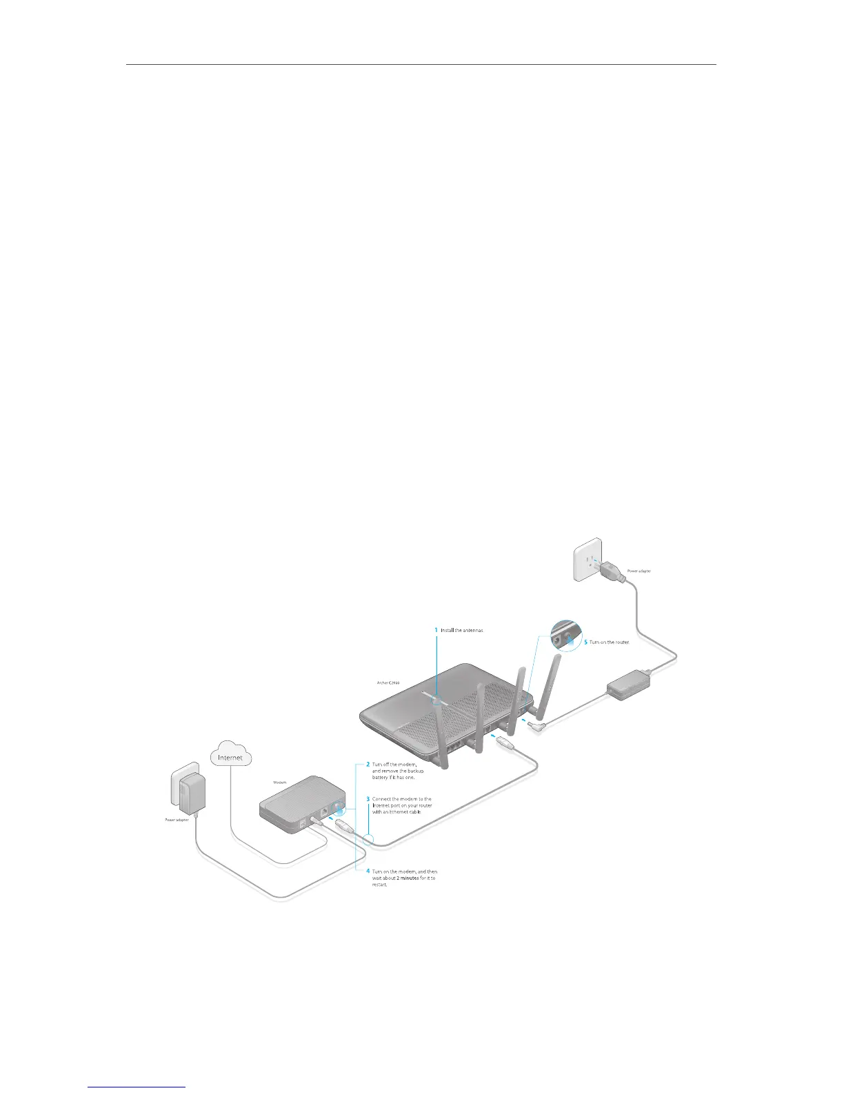 router’s Internet port, then follow step 4 and 5 to complete the hardware connection.