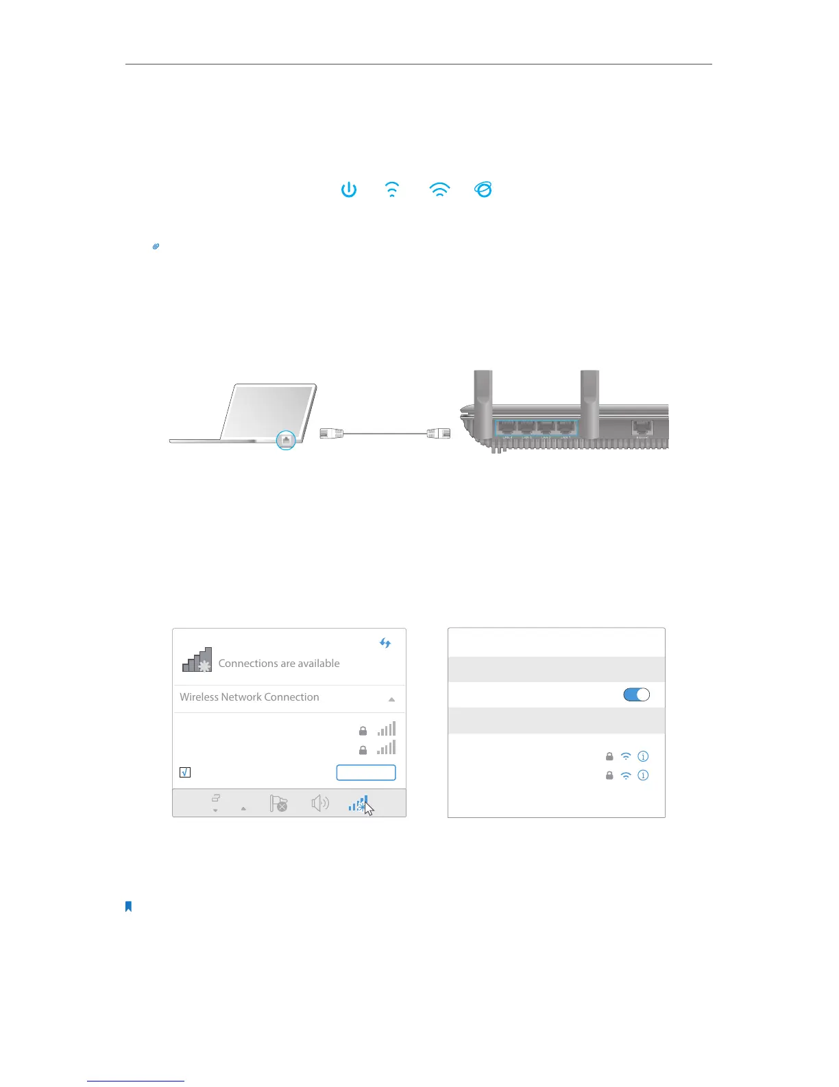 Tips: If 2.4GHz LED and 5GHz LED are off, press the WPS/Wi-Fi On/Off button for about 2 seconds, and then
