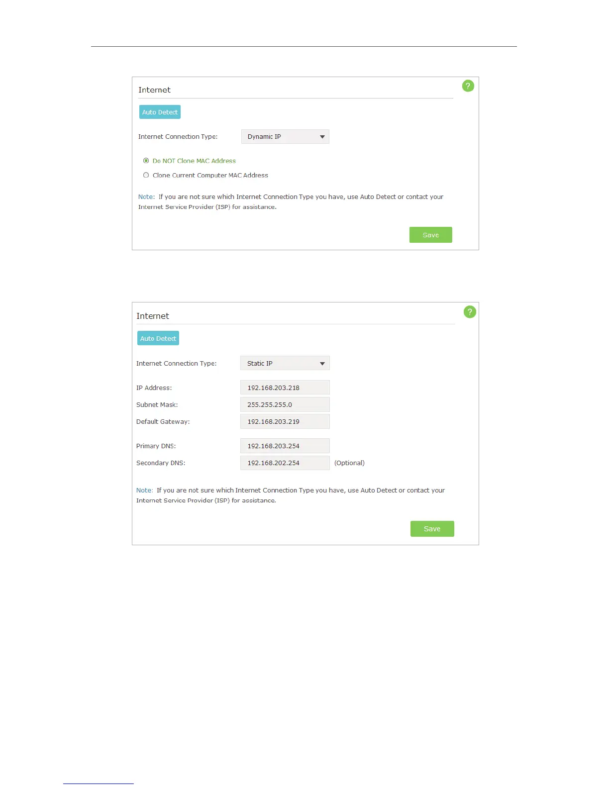 2 ) If you choose Static IP, enter the information provided by your ISP in the