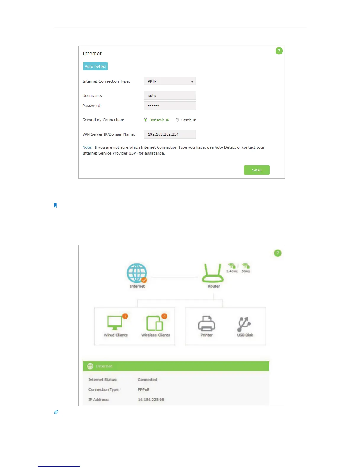 5. Click Save to make the settings take effect. To check your Internet connection, click