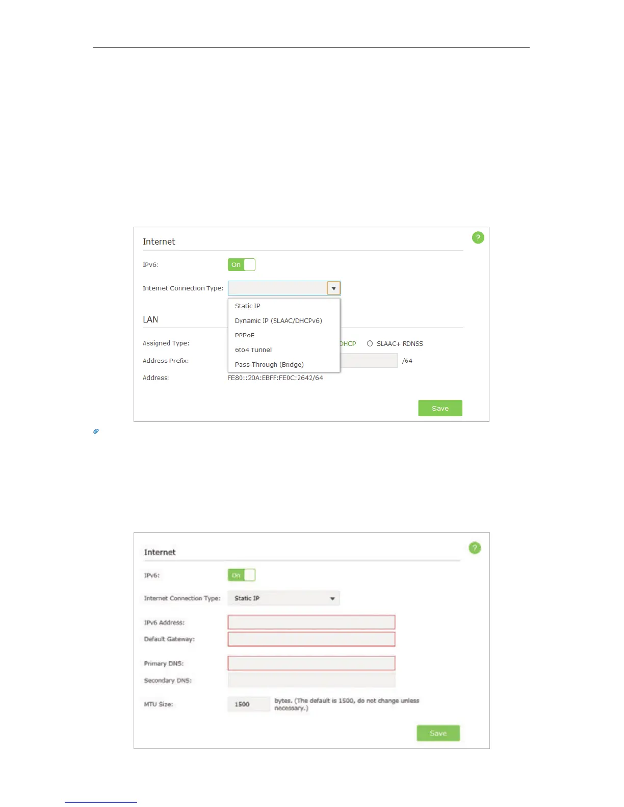 2. Go to Advanced > IPv6. Select the Internet connection type provided by your ISP.
