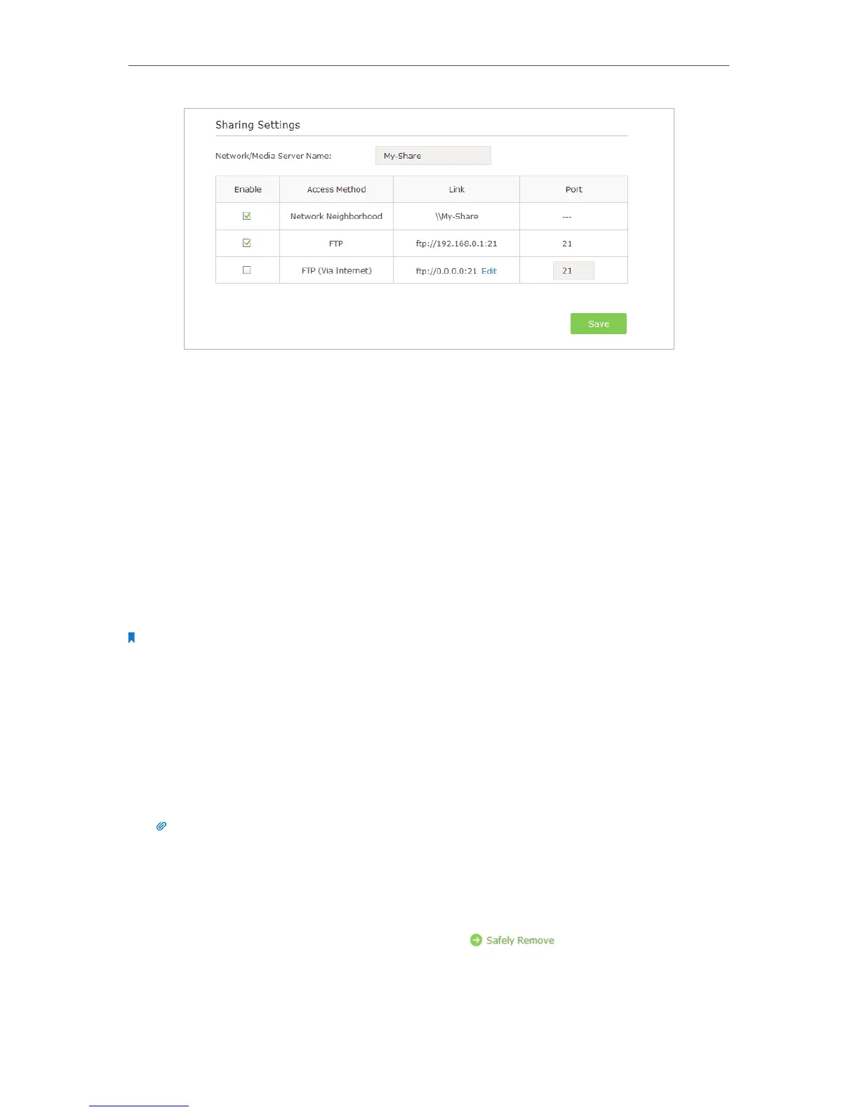 • Before you physically disconnect a USB device from the router, safely remove it to avoid data damage: Go