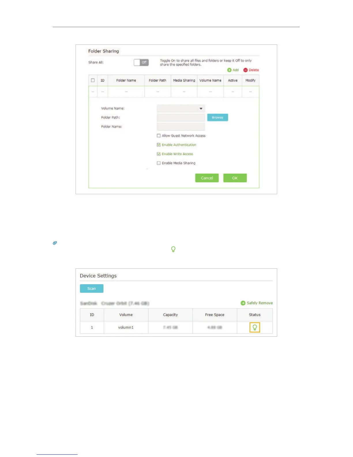 The router can share 32 volumes at most. You can click on the page to detach the corresponding volume you do