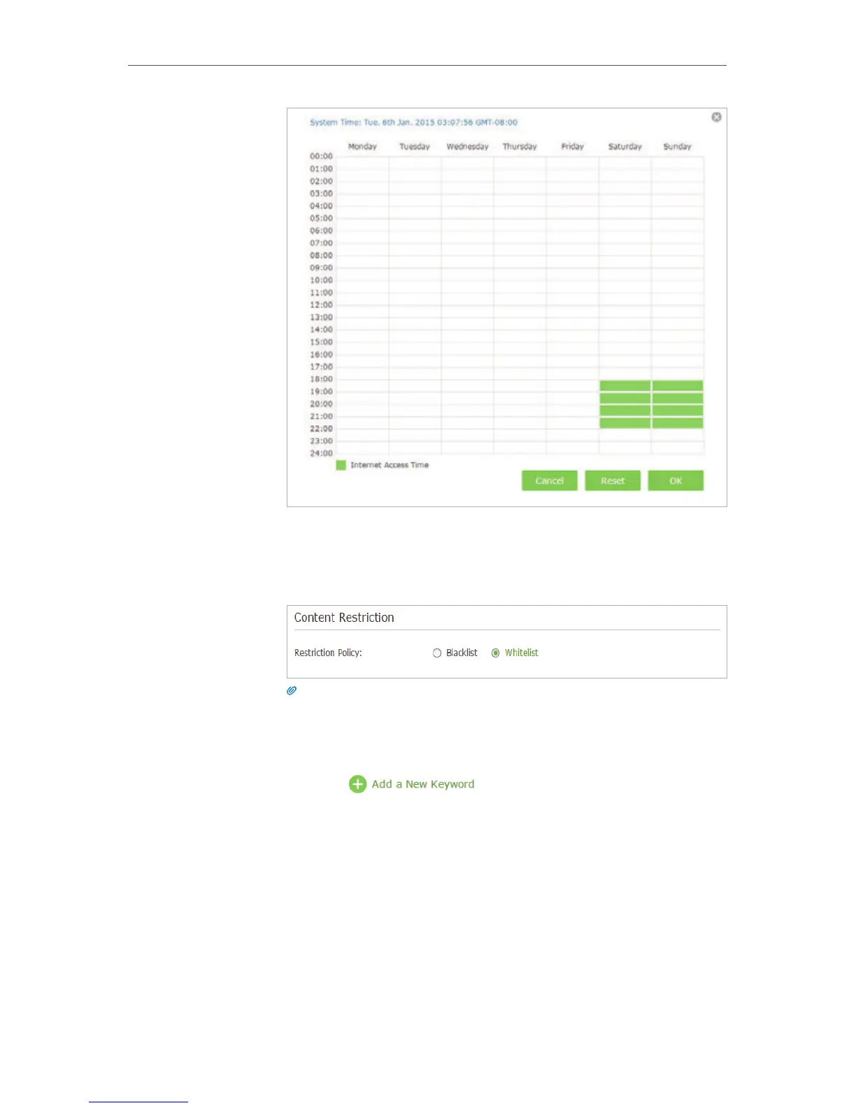 2. With Whitelist selected, the controlled devices can only access websites containing