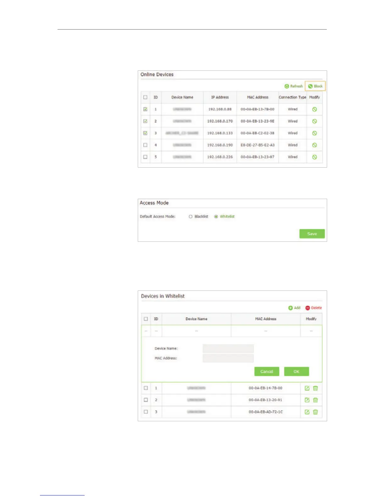 3 ) Click Block above the Online Devices table. The selected