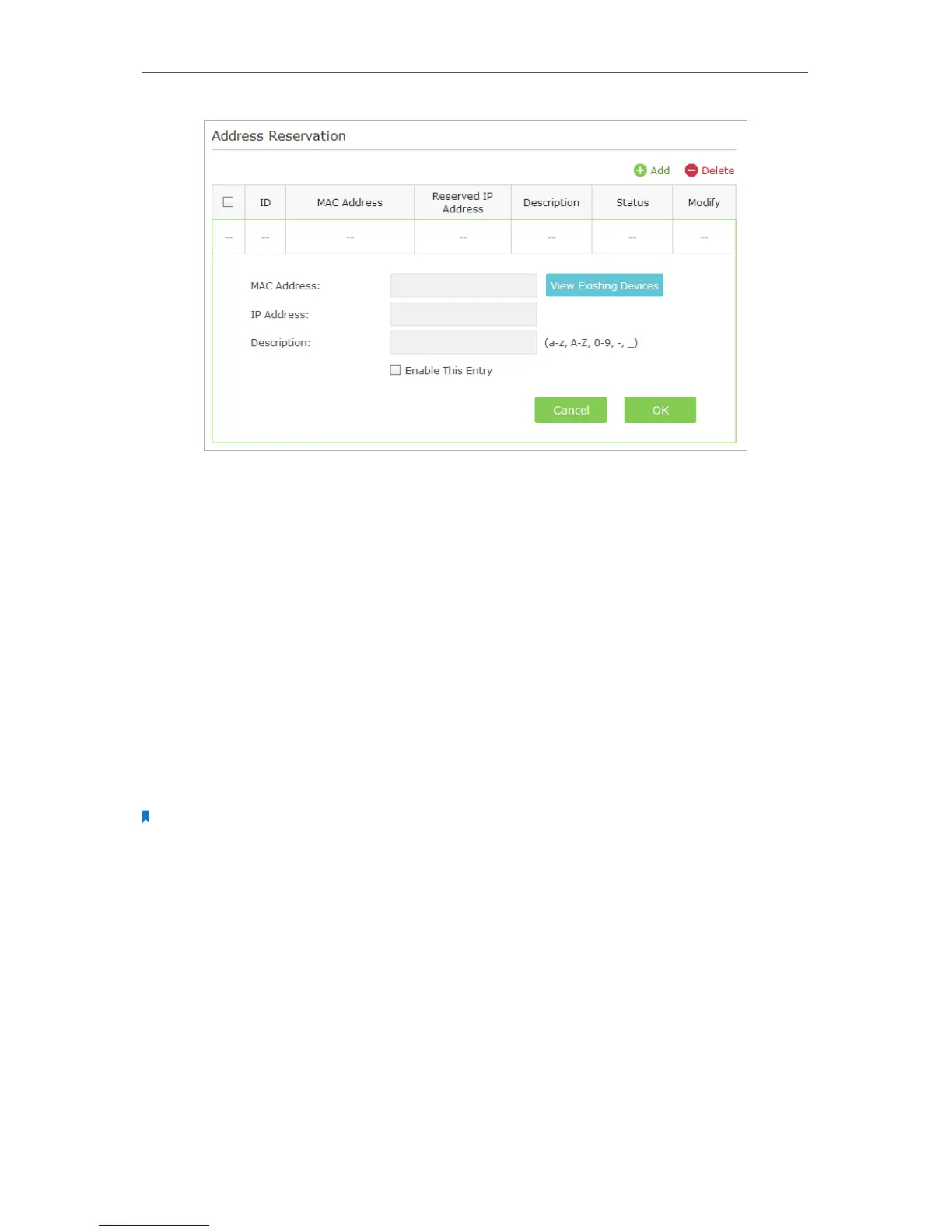 2. Click View Exsiting Devices or enter the MAC address of the client device.